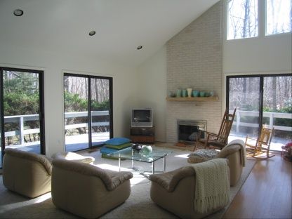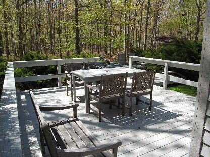 Convenient to island beaches and Gardiners Bay Country Club golf course, this 3 bedroom, 2 bath home is a sweet country retreat. Master suite has private bath and office. Open living room has vaulted ceilings, stone fireplace and spacious dining area with glass doors to multilevel wrap deck with built in barbecue. The house has a full basement and landscaped yard on a wooded acre of land.
