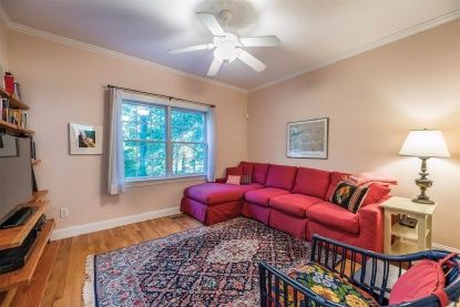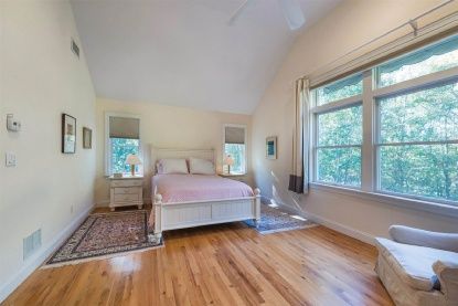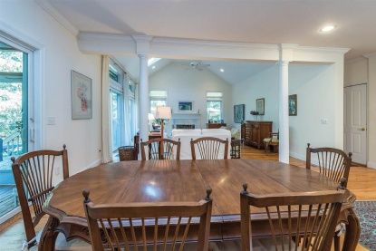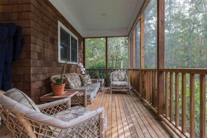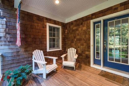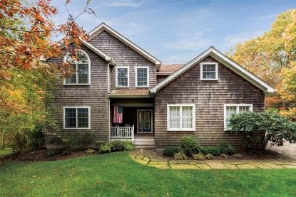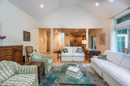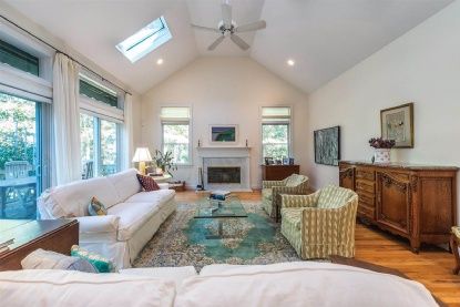 This beautifully maintained 2,392+/- sq. ft. cedar-shingled four bedroom, three bath residence is the ideal move-in-ready home. A cozy front porch beckons from the stone walk; inside, the generous open floor plan features a double-height living room with wood-burning fireplace, skylights and French doors with transom windows that lend a sunny and bright ambience. The dining area, overlooking an ample screened porch, flows to a perfectly appoin