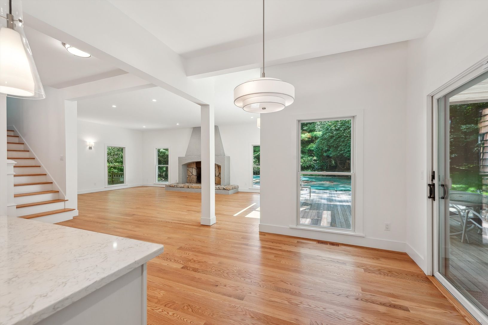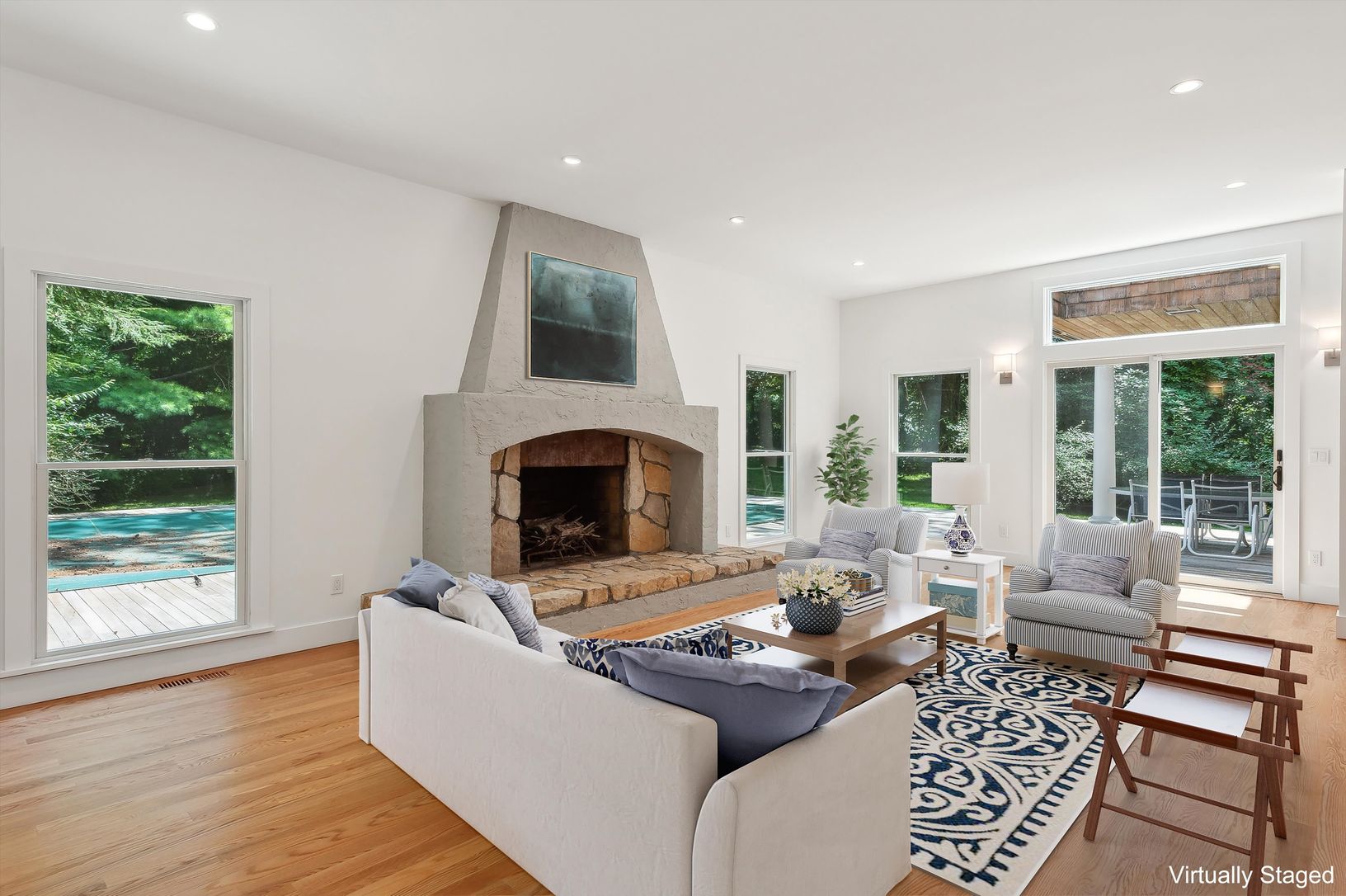 Located on a lush, nearly one-acre lot this move-in-ready home combines modern luxury with practical living. Built in 1987 and fully renovated in 2024, the 2,381 square foot property features a first-floor primary bedroom and bathroom for easy accessibility. Hardwood flooring throughout, a cozy fireplace, adding warmth and style to the living area and a new kitchen with all new appliances. The home includes a total of three spacious bedrooms,