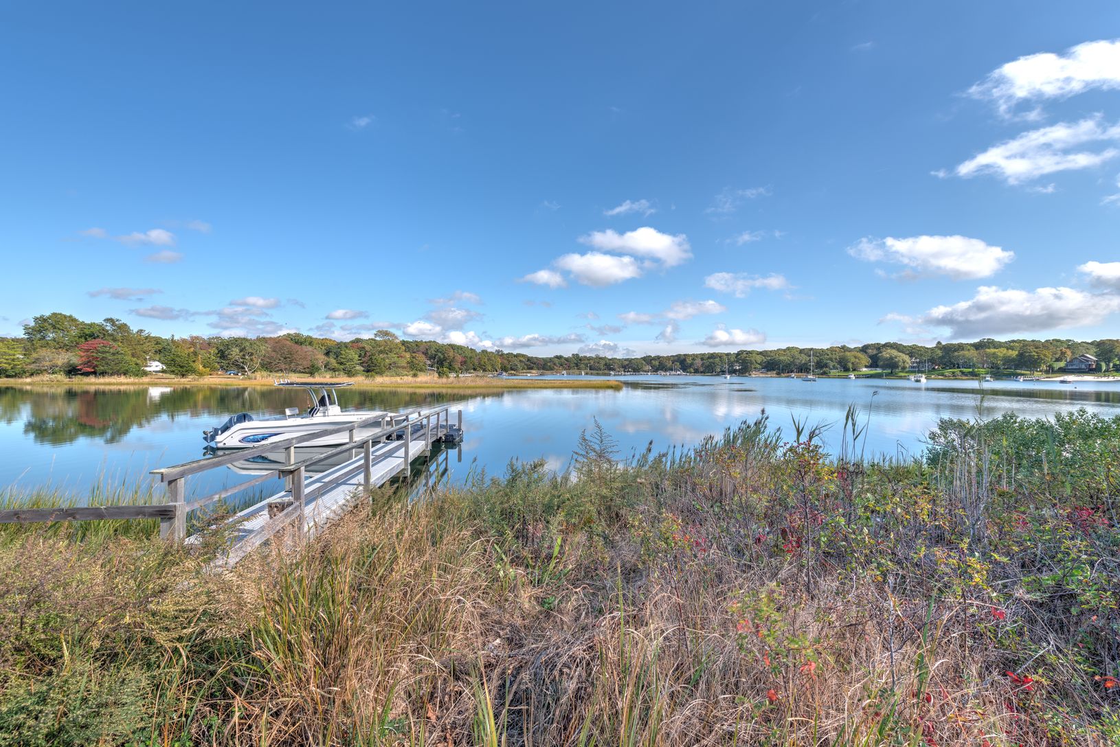 21 East Beach Drive, Southampton. Bay front cottage with wide open views of Little Peconic Bay and Wooleys Pond from every window. Located in the sought- after Southampton Shores, a community that includes tennis, basketball court, and boat mooring. Five bedrooms, four baths, large living room with cathedral ceilings, bright and sunny substantial eat in kitchen, enclosed sun porch, deck, and private beach. Come relax in the hammock while liste