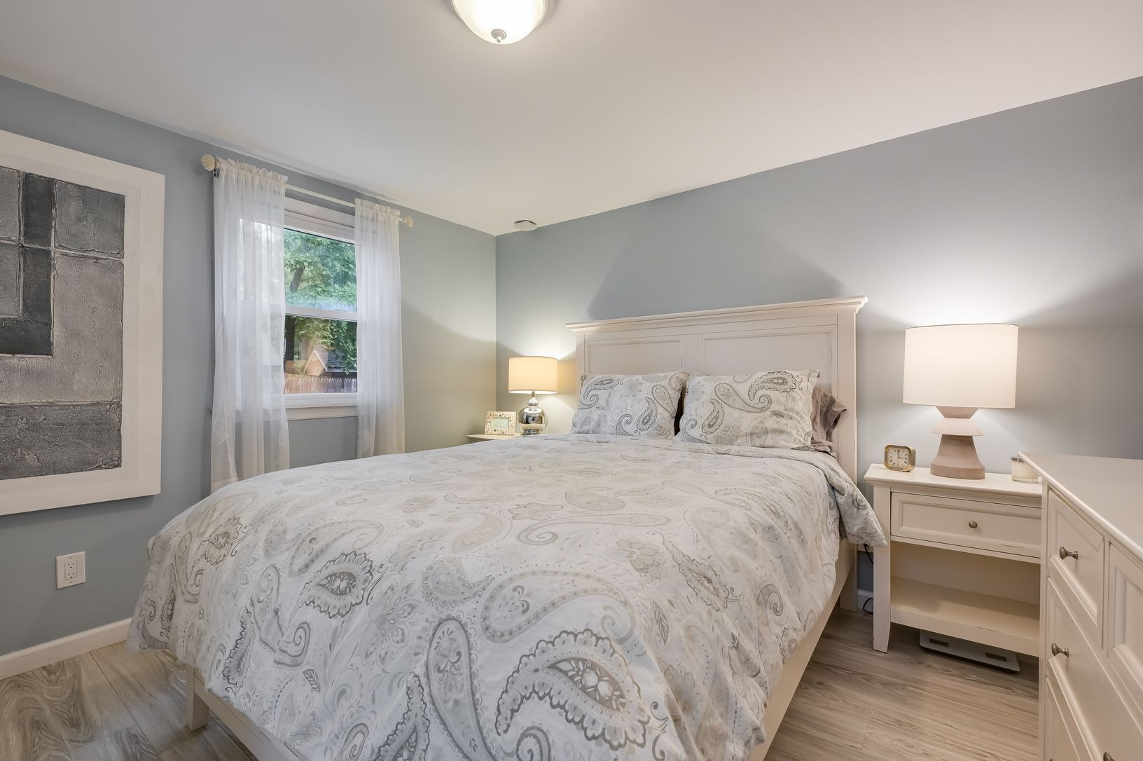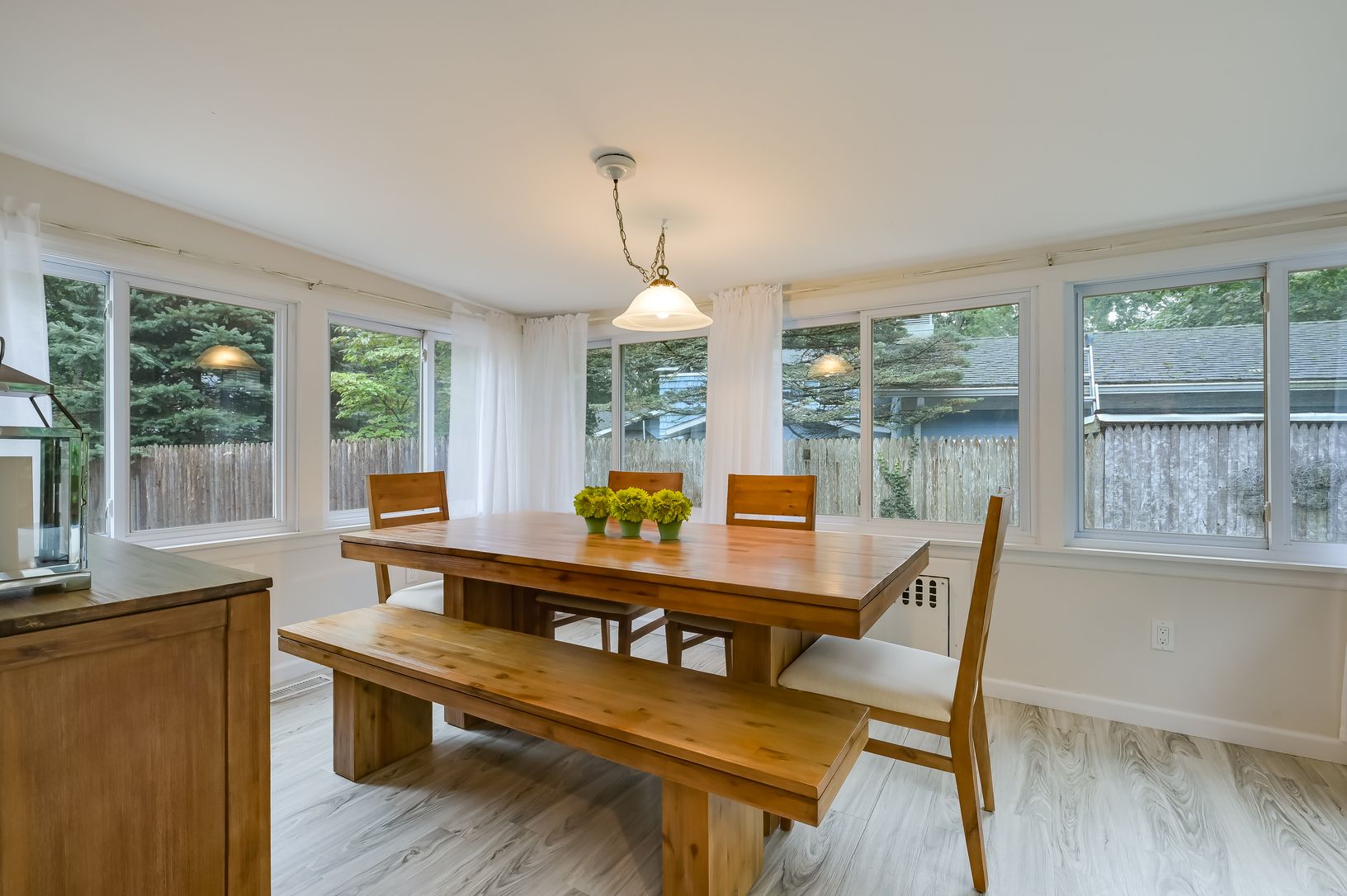 This 4 bedroom Sag Harbor cottage is crisply renovated and just a block from a beautiful bay beach. Located in the hot neighborhood of Pine Neck, you'll enjoy swimming and kayaking, just a minute away. Smartly updated with new kitchen and baths, the first floor provides an open floor plan with cathedral ceilings, a kitchen with stainless steel appliances, a lovely dining room bathed in light, and first floor master suite. The full basement off