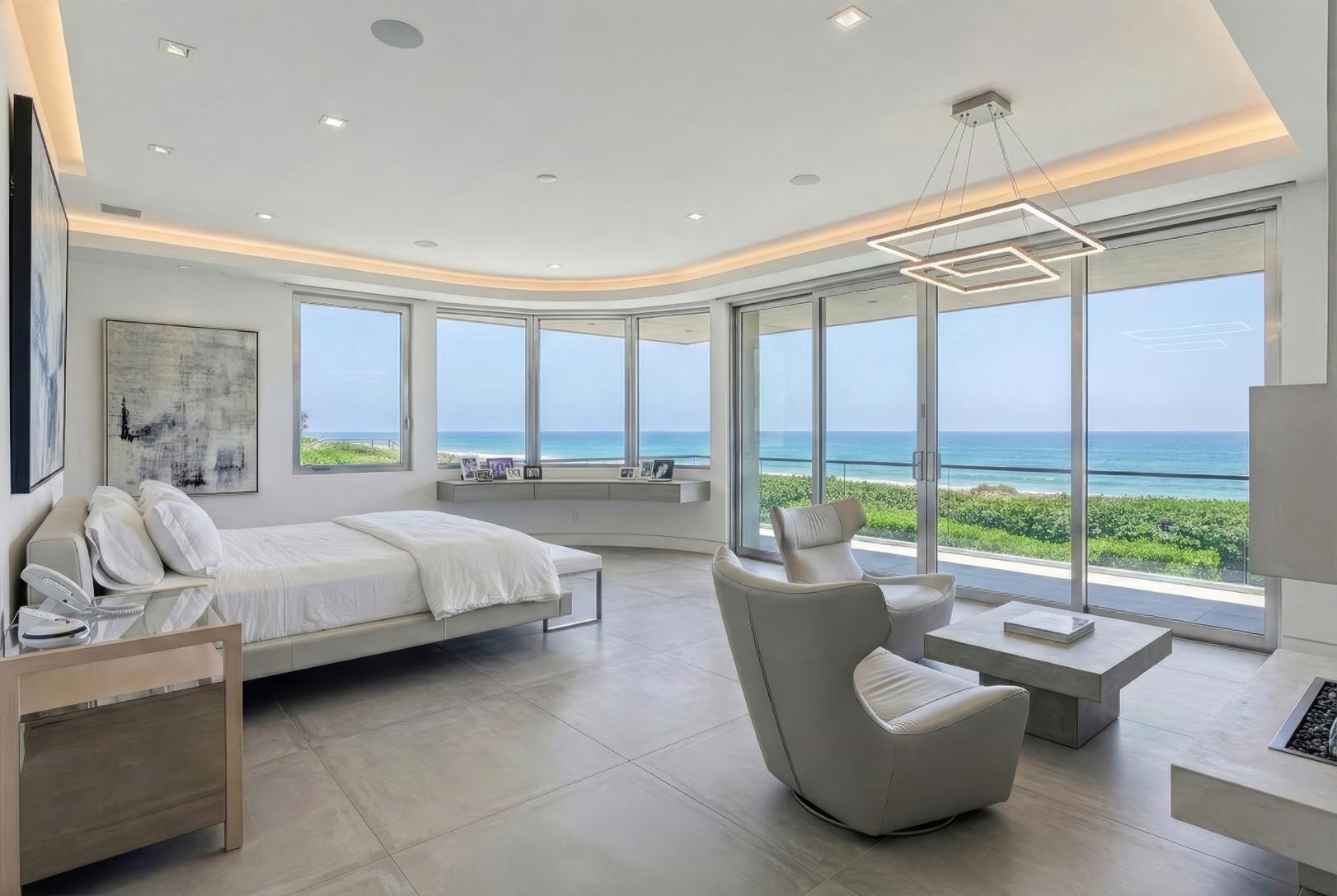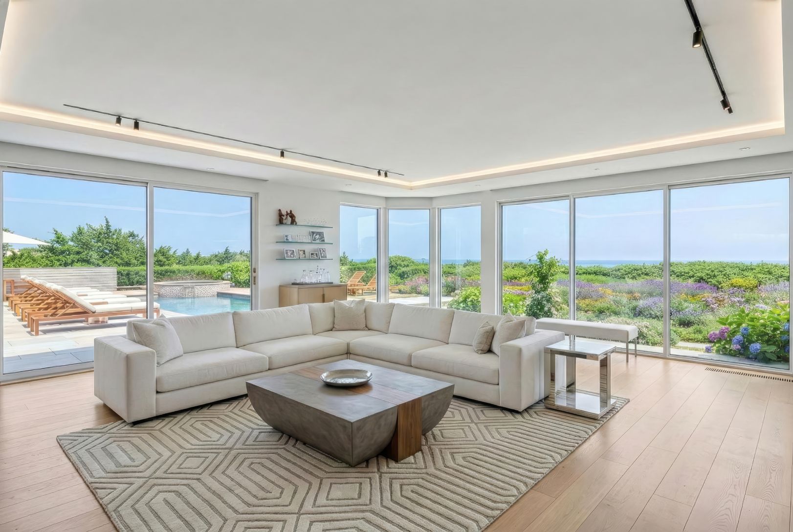 With approximately 200 feet of direct ocean frontage on one of Sagaponack's most private and prestigious lanes shared by only three other homes, this is a generational opportunity rarely seen on the East End. The existing modern beach house is a commanding, nearly 9,000 sq. ft. home built with substance and intention. Walls of glass open the home to the serene ocean landscape, offering first floor views of the Atlantic Ocean and dramatic sunse