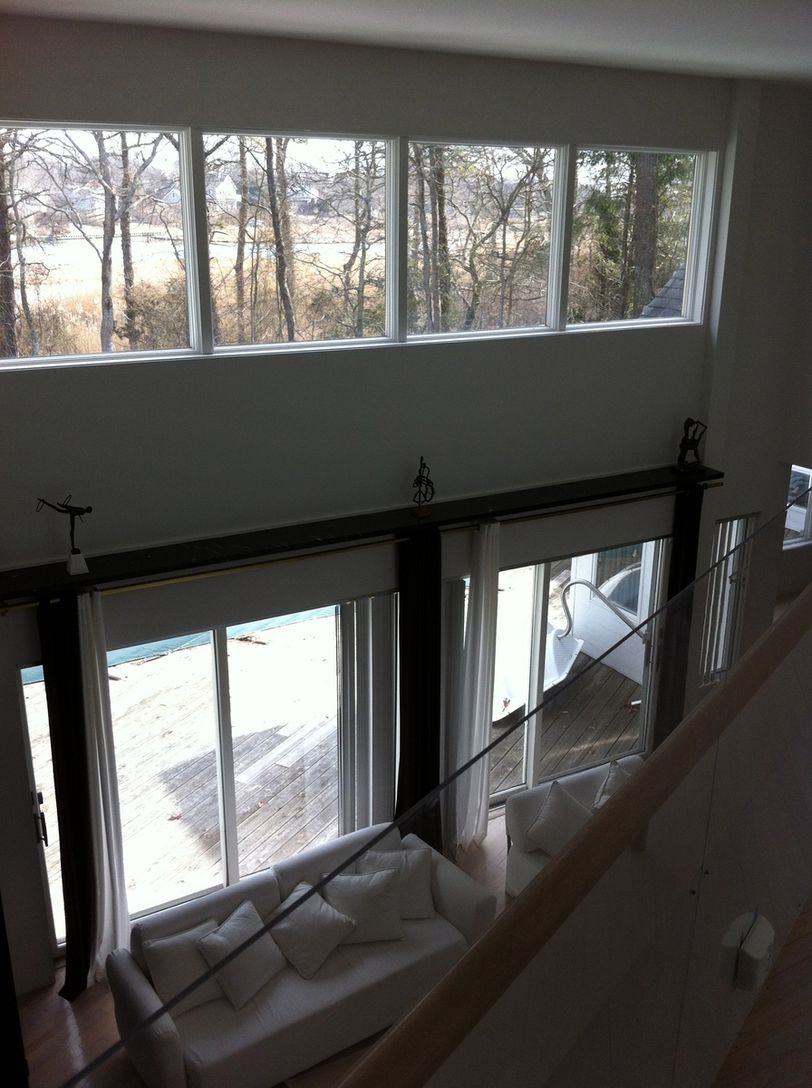 floor, the great room offers a wall of windows, soaring ceilings, water views,and the feeling of freed