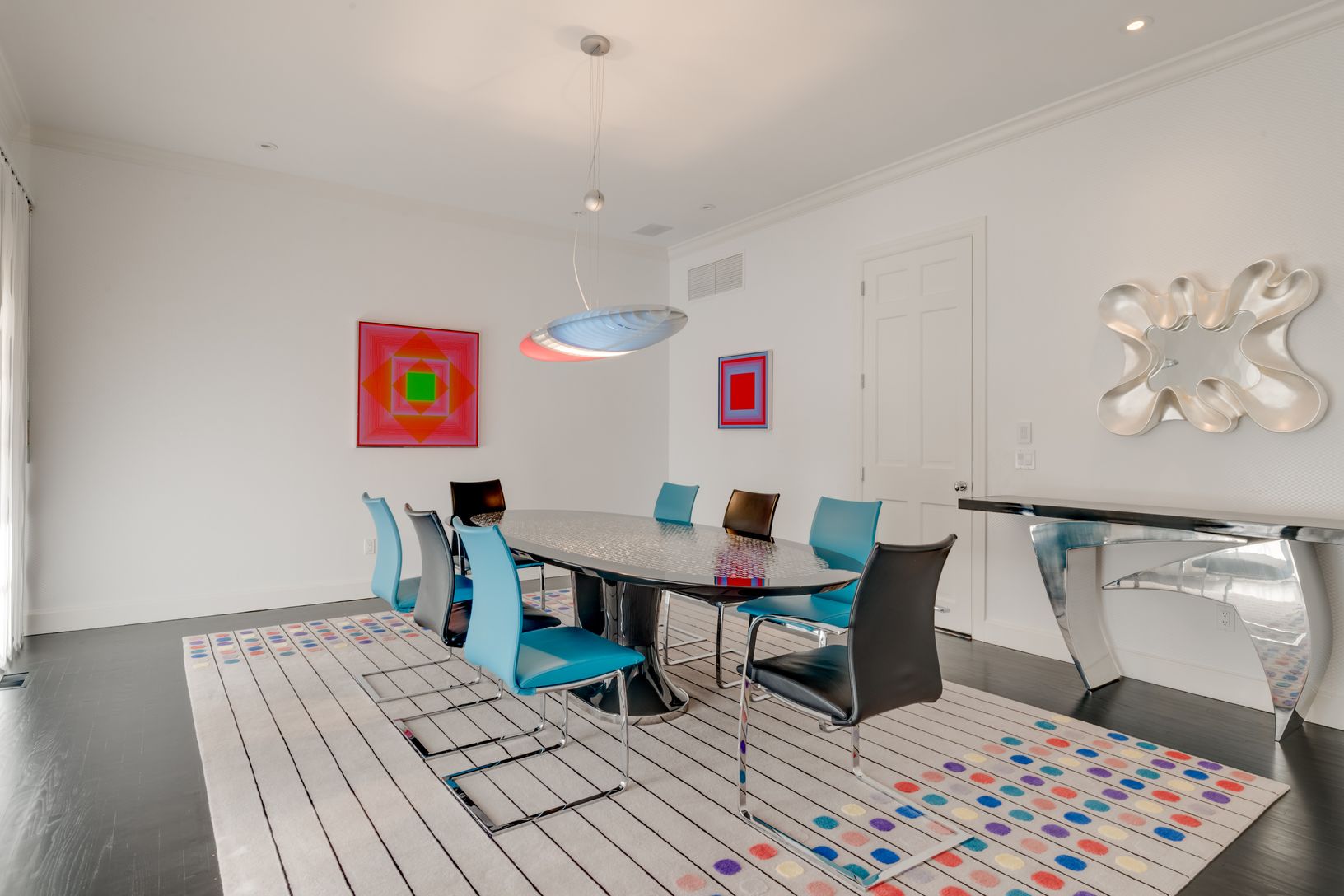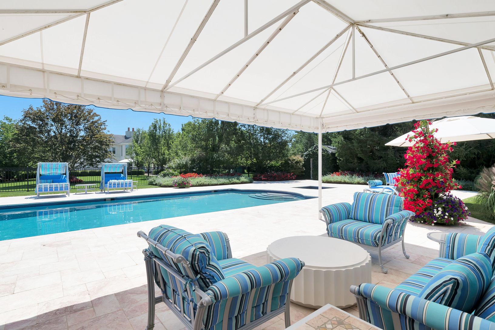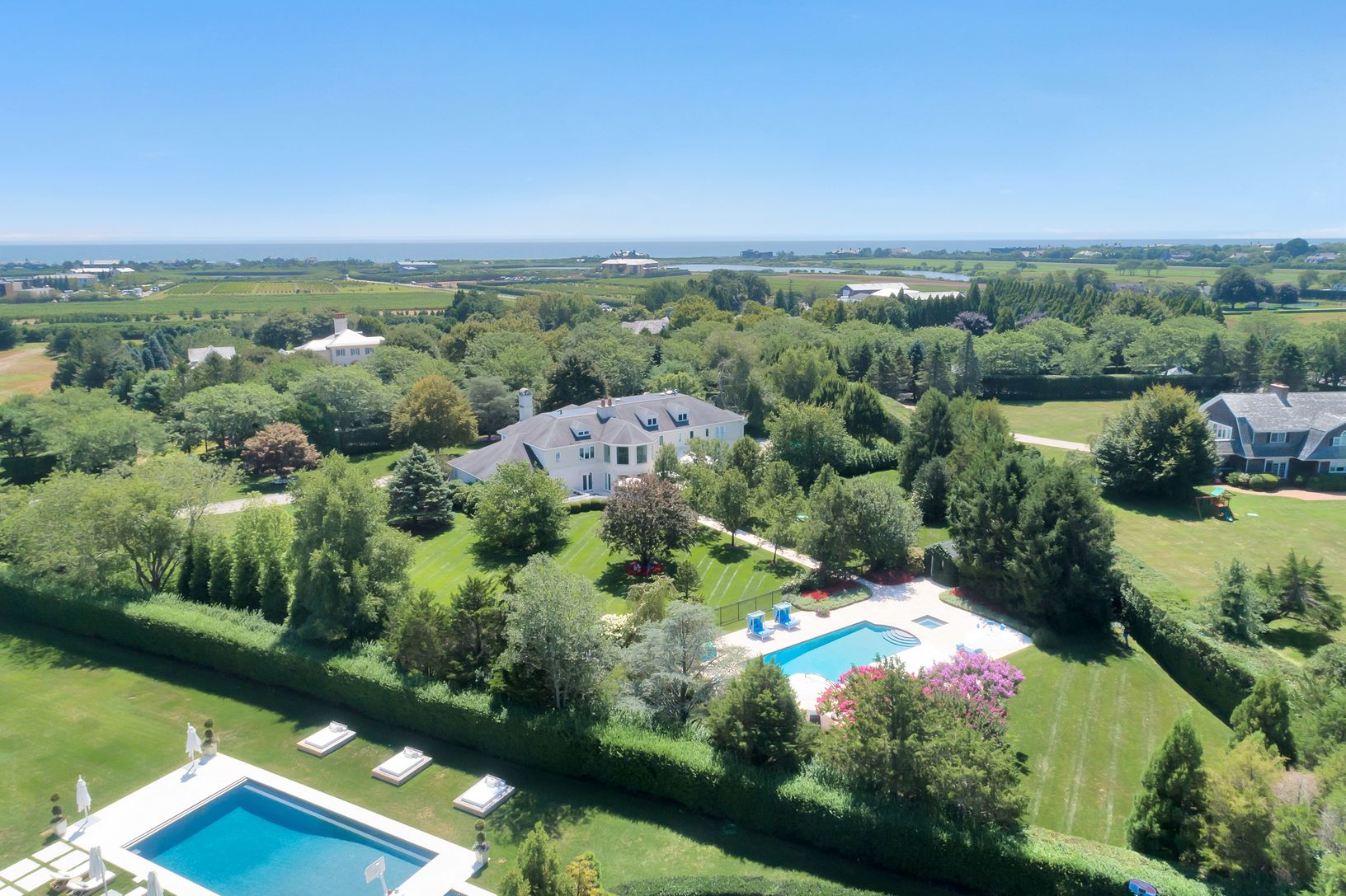 Located in the exclusive ocean-side Southampton enclave of Fordune stands an impressive 12,458 sq.ft. manor nestled in a park-like setting on 2.5 lush acres, now on the market for $11,900,000. The stately brick and stucco estate, with interiors by the award-winning NYC based design team of Angel Sanchez & Christopher Coleman, is a delightful retreat in the Hamptons where spacious rooms flow seamlessly into each other and pops of color del