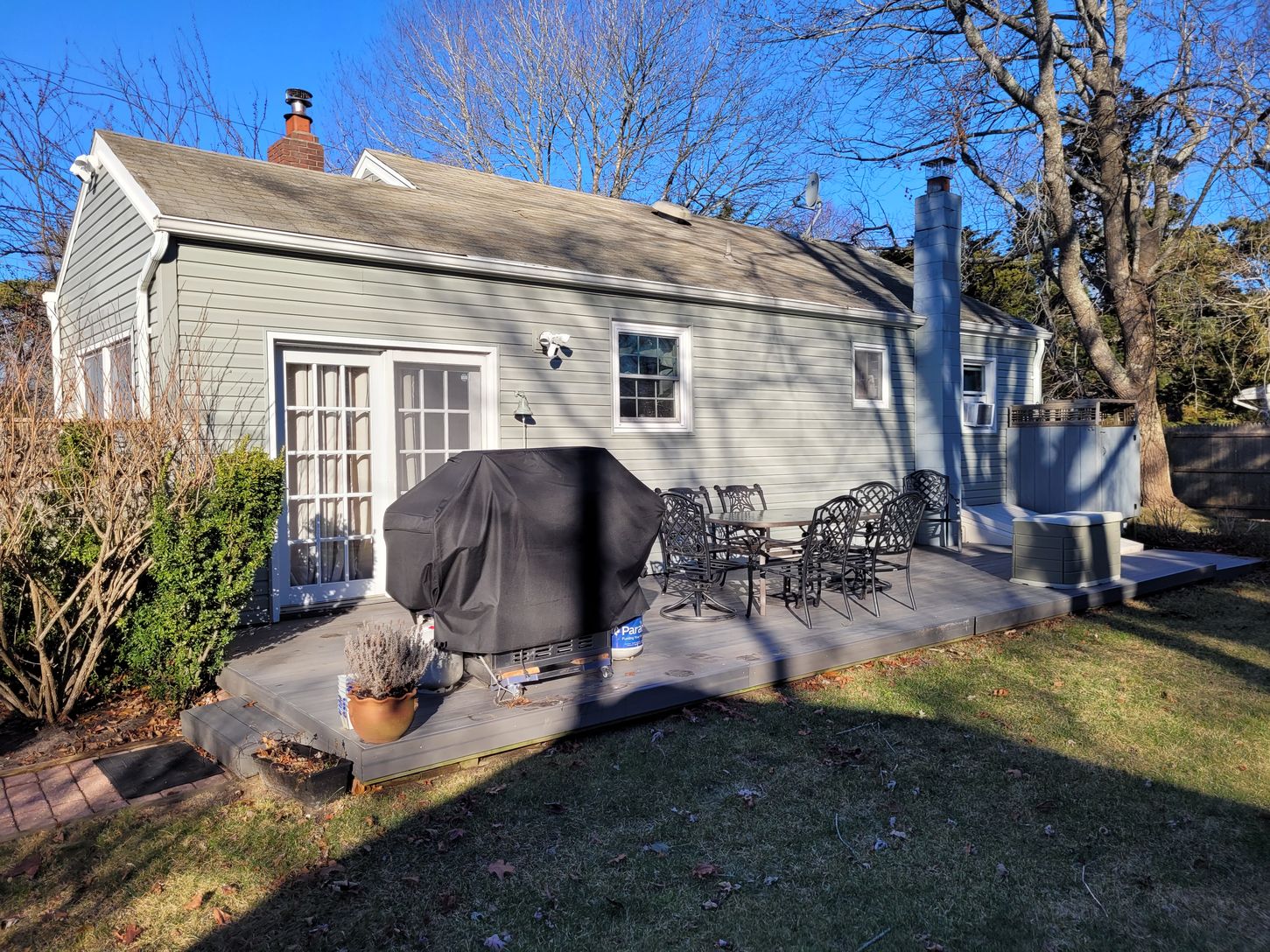 Charming two-bedroom home in walking distance to Shinnecock Bay and biking distance to ocean Ponquogue Beach. Backyard is fully fenced in with mature trees and outdoor shower plus a trek deck for entertaining. Barbecue grill and fire pit are provided. Able to walk to the Hamlet cafe and Fishing Station bar/restaurant.