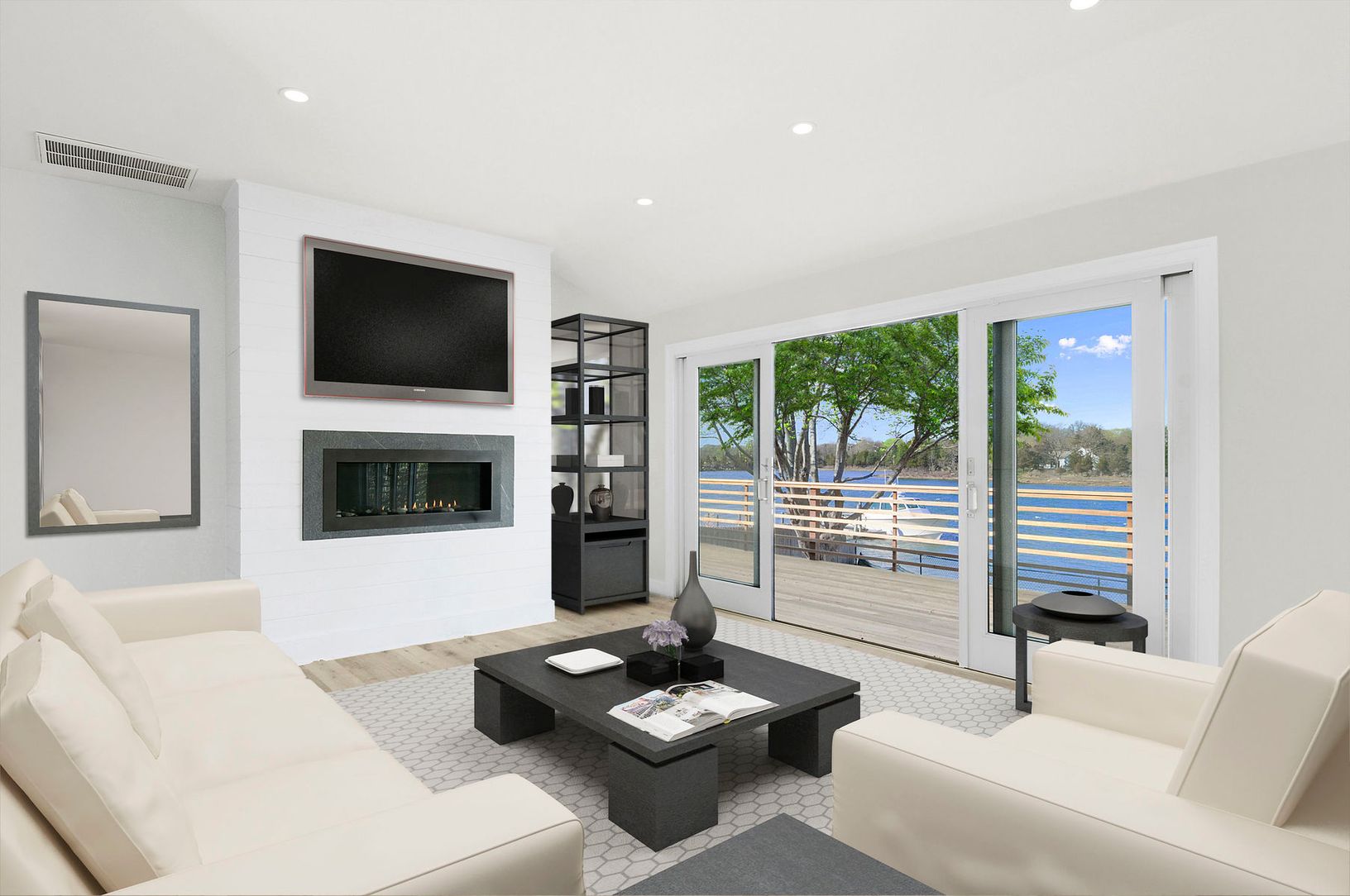 Newly renovated waterfront Postmodern, located on Sag Harbor Cove. Beautiful views overlooking the water. Gourmet kitchen, 4 plus bedrooms, and 4 baths. Radiant heat in master bath and lower level. Expansive decking and mature landscaping create a serene living space for year-round enjoyment. The property is bulk headed with dock. Generator. Pool Permit in place. Short distance to beach and Sag Harbor Village.