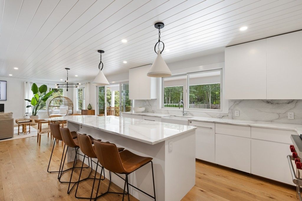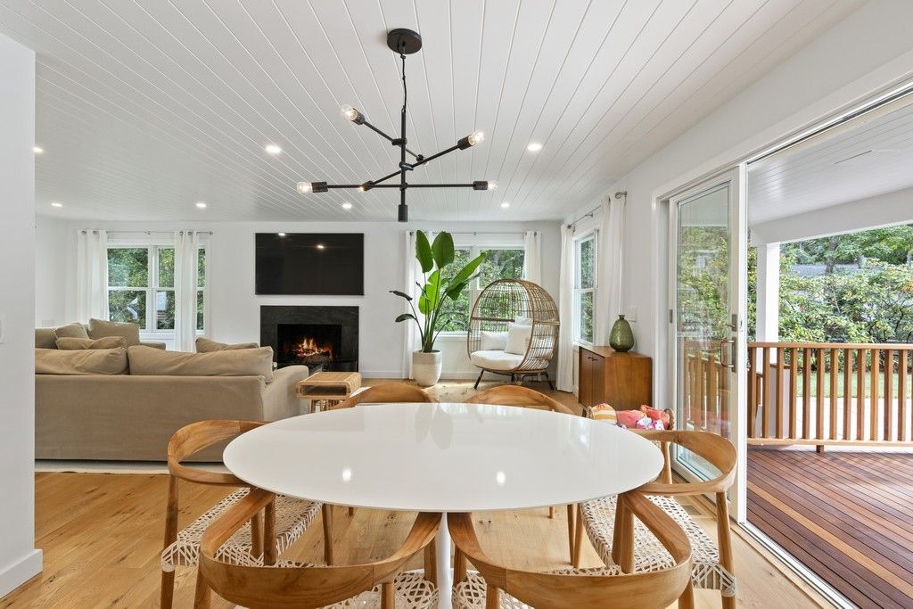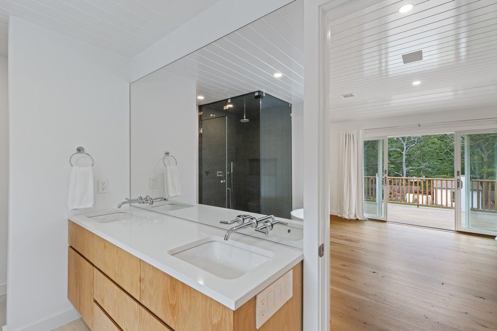 On a leafy East Hampton country lane a new transformation awaits. PostModern five bedroom house with six-and-a-half bathrooms is ready for you. Self-contained retreat features gym and home office. White oak flooring throughout.