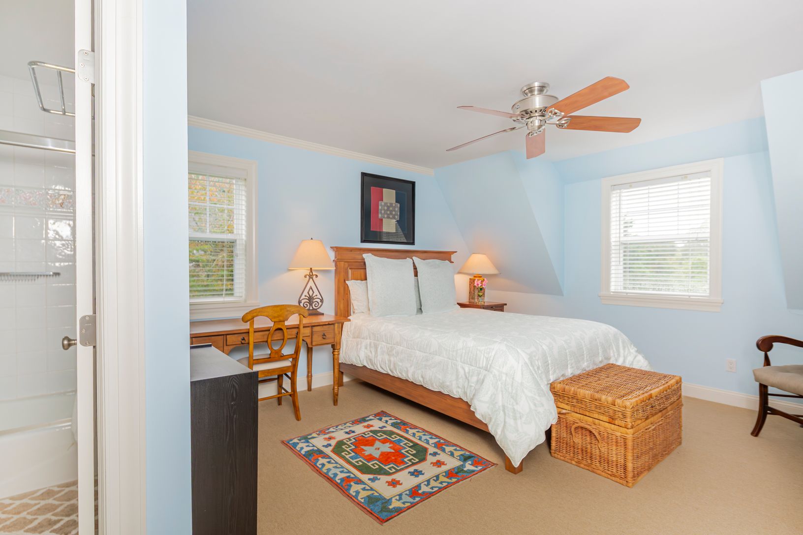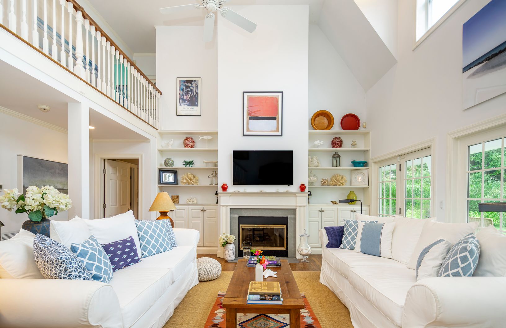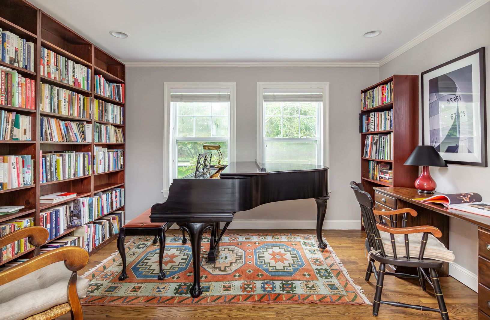 This light, bright, spacious five bedroom house has it all: giant living room with soaring, double-height ceiling and wood-burning fireplace, first floor bedroom, open kitchen, music room (with grand piano,) -- even a finished basement with ping pong table, air hockey table and exercise equipment. Village Fringe. Wonderful home for entertaining or cozy family life.