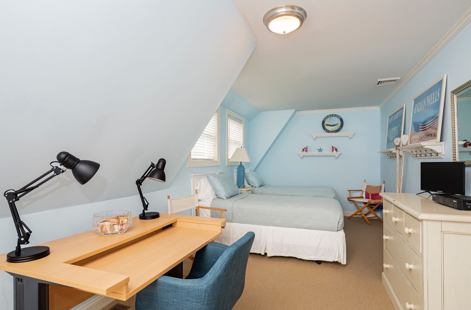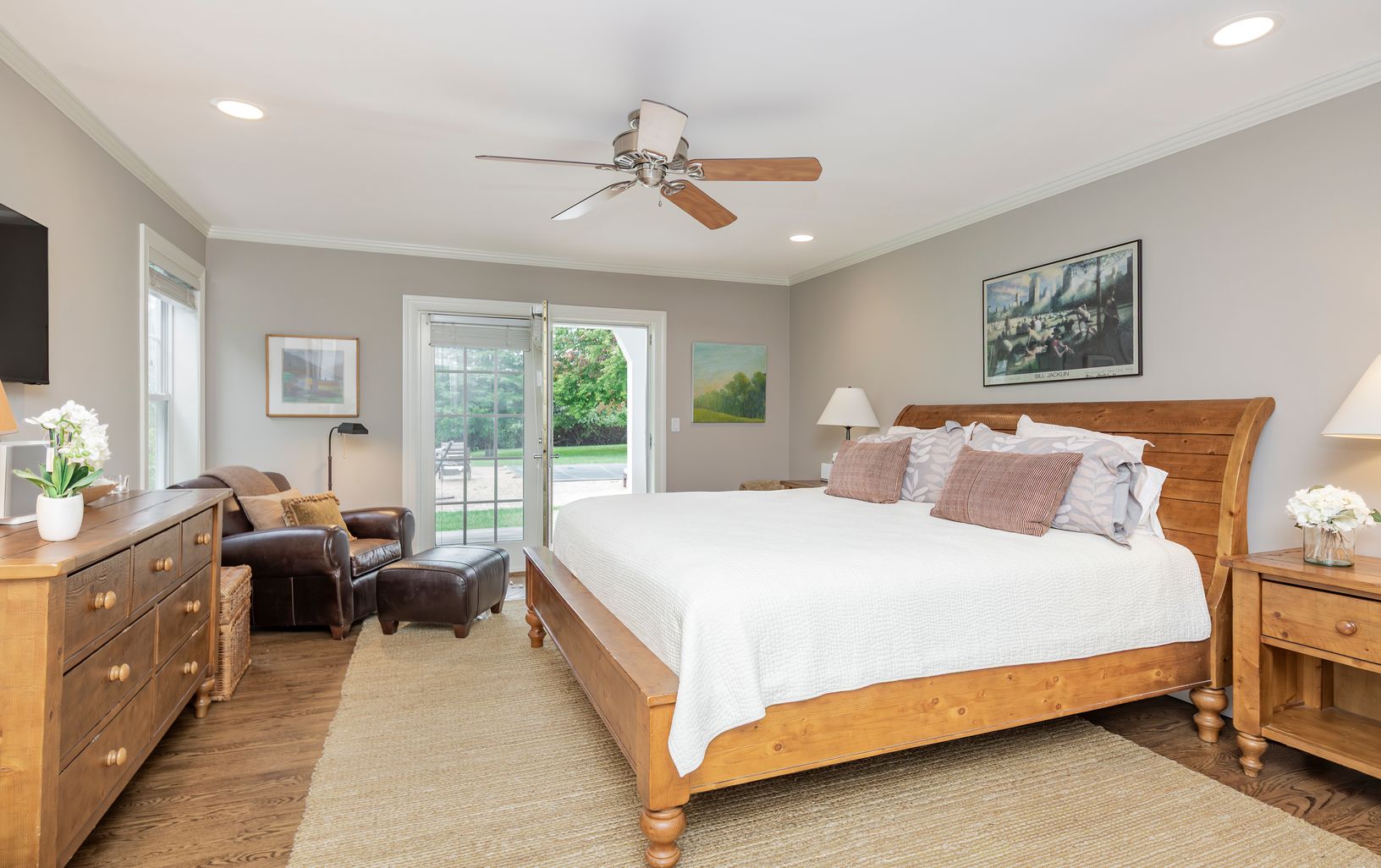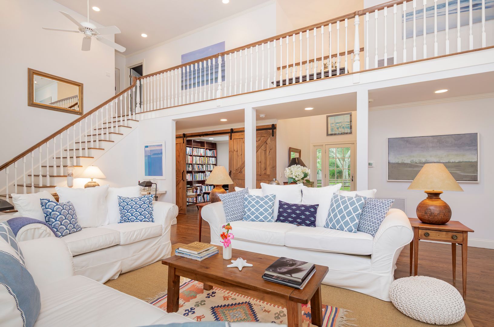This light, bright, spacious five bedroom house has it all: giant living room with soaring, double-height ceiling and wood-burning fireplace, first floor bedroom, open kitchen, music room (with grand piano,) -- even a finished basement with ping pong table, air hockey table and exercise equipment. Village Fringe. Wonderful home for entertaining or cozy family life.