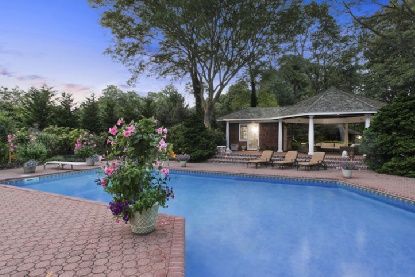 Baywood Estates - This stunning custom-built home is situated on 1.73 acres with 6 Bedrooms, 4 baths, huge living room/family room, eat-in-kitchen, formal dining room, hardwood floors, fully finished basement/playroom, workshop, built-in kitchen appliances, office/maid/guest BR off kitchen and separate laundry room. Along with the saltwater pool and Cabana, you will find a half court for basketball, extra large gardening shed, oversized custom