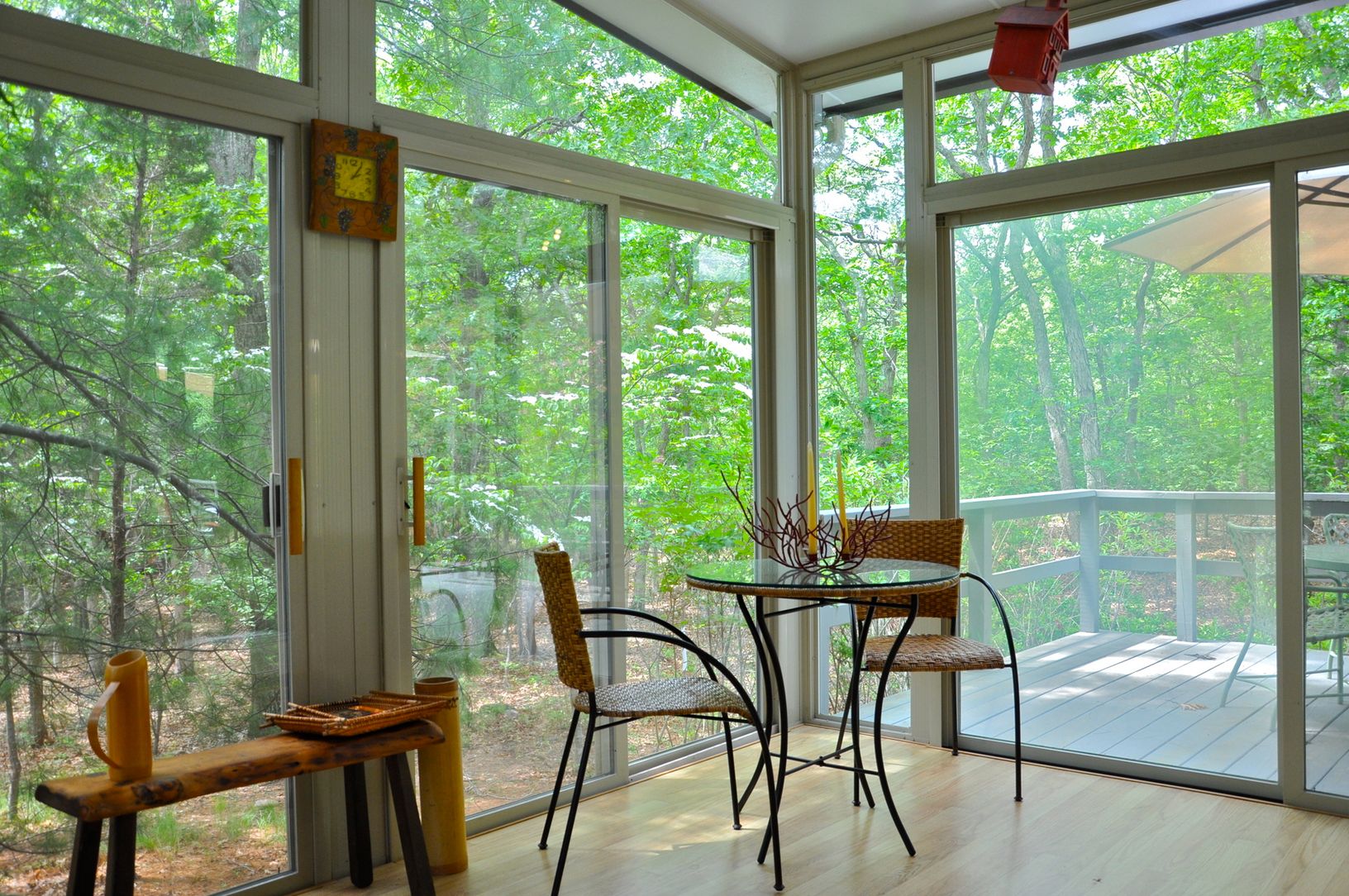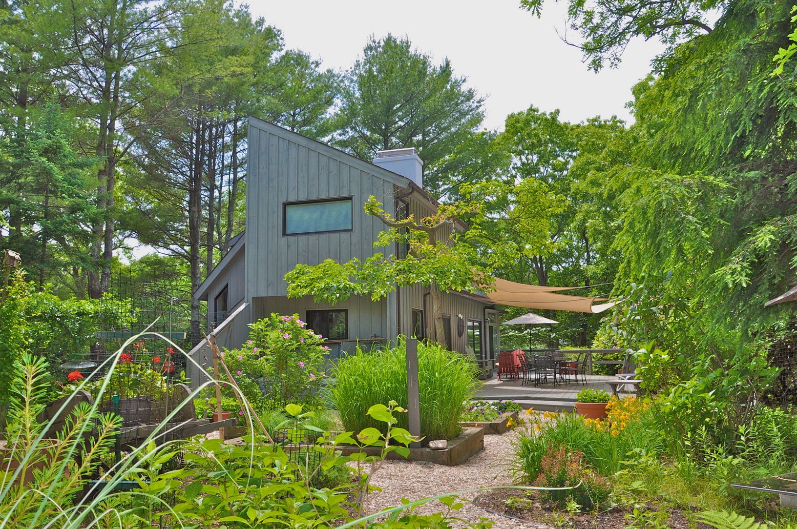 This proudly maintained Contemporary is set on a shy 1/2 acre parcel with beautiful perennial gardens. Open main living space and many windows, along with a connecting screen and glass porch allow an abundance of natural light and the serene feeling of being embraced by nature. Easy access to the spacious back deck from kitchen or living area is just perfect for entertaining. This setting is wonderfully private and peaceful. Only 2.5+/- miles