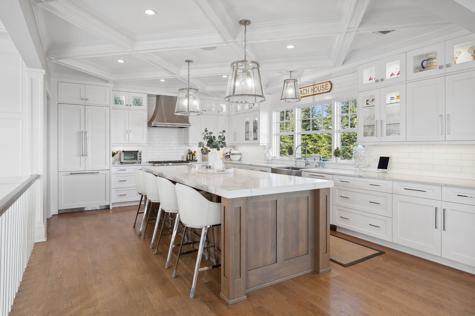 This gorgeous beach home is situated on one of the highest points in Montauk with amazing views of Lake Montauk and Block Island Sound, this gorgeous 5,200 square foot home offers 6 bedrooms, 5 full and 2 half baths with a beautiful heated Gunite pool situated on a half acre of land. This newly constructed home delivers attention to detail with high end design, finishes and state of the art systems. The grand staircase takes you to the chef's