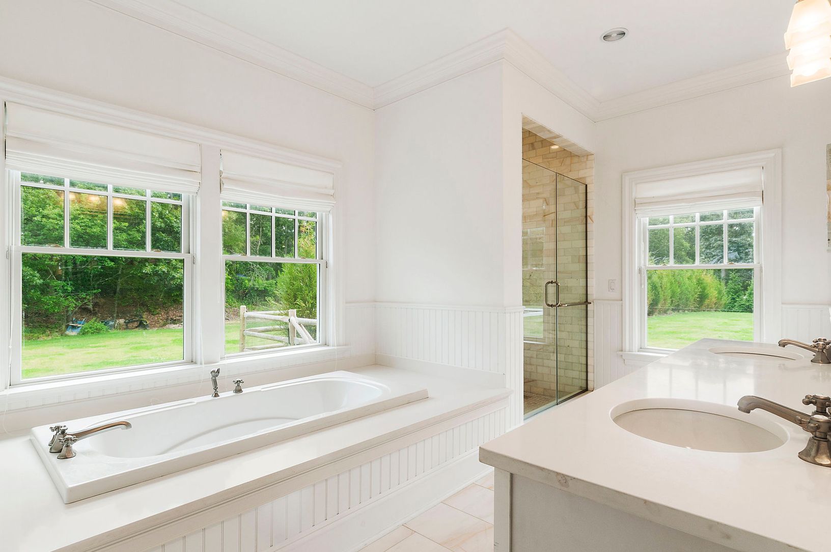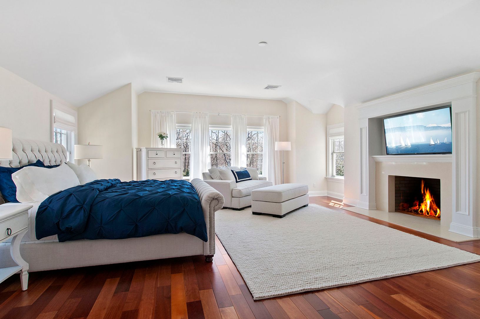 Designed for spending quality time with family and friends, this newly constructed home is a short distance from the bay beach. All bedrooms are en-suite, with a spacious first floor master and a second floor master with fireplace. The gourmet kitchen has double appliances and an oversized island to gather around for informal meals. The open floor plan on the main floor has a large dining area and a sunken living room with fireplace. The lower