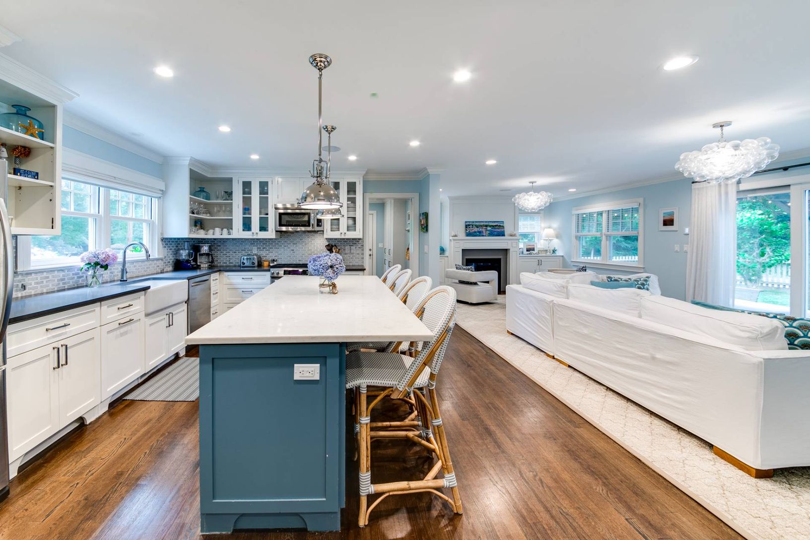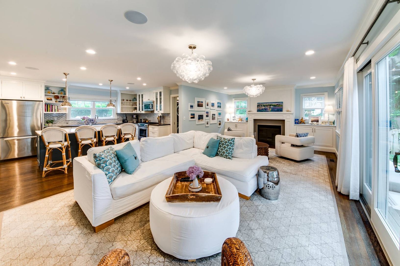 Welcome to 21 Osborne Lane, a prime investment opportunity blending superb location, top-tier construction, and modern amenities. This extensively renovated 3+ bedroom, 4 bath cedar shingled home is flooded with natural light. The main level boasts a spacious great room with an east-facing kitchen, expansive island, and a combined living/dining area with a gas fireplace. Large glass doors open to a patio under a wisteria-covered arbor, featuri