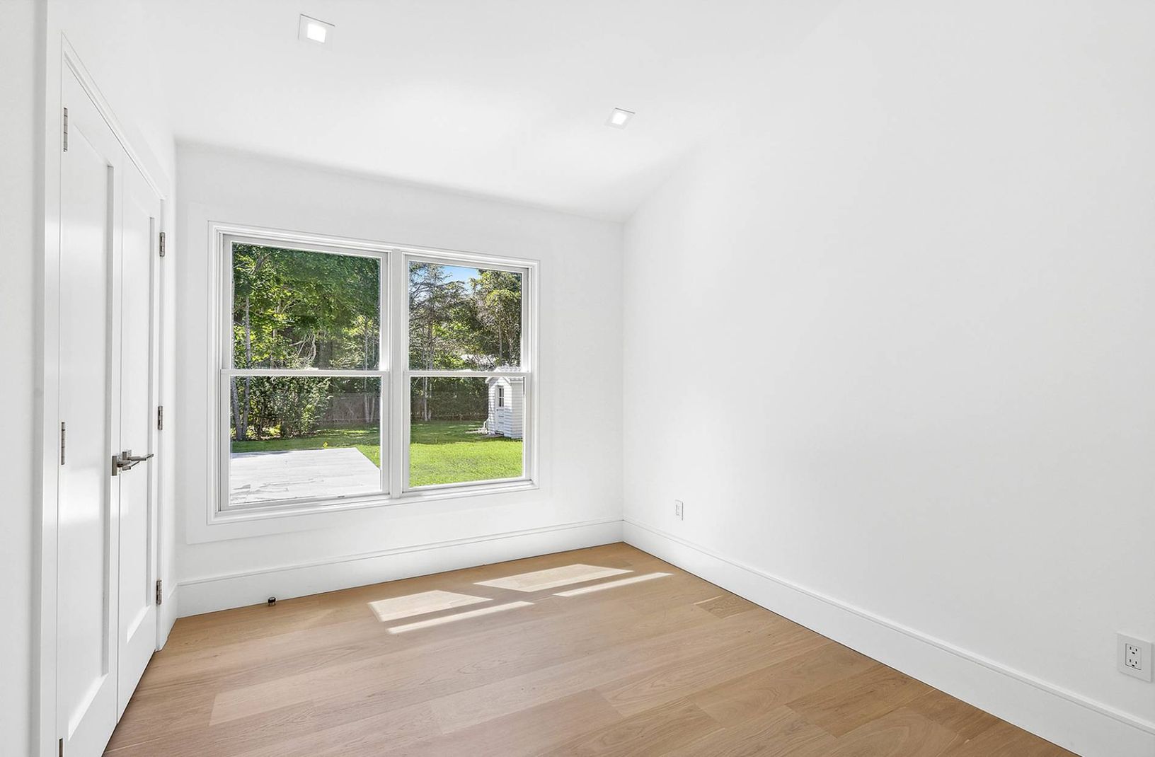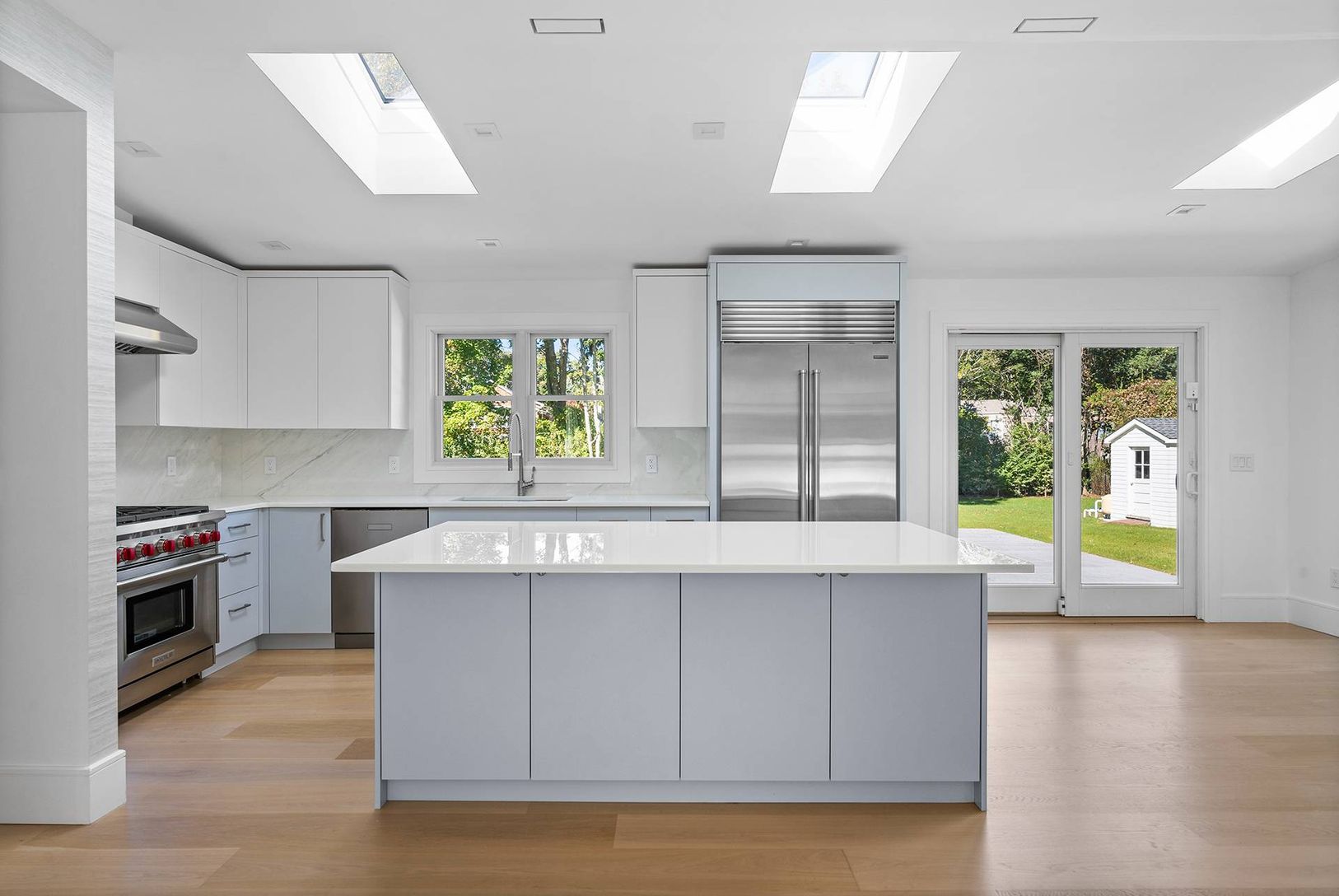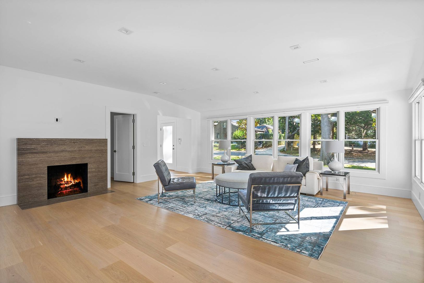 Space and light come together in simplistic harmony with this modern, one-level chic cottage in North Haven, just moments from Sag Harbor Village and everything you need for an idyllic, turnkey Hamptons experience. Newly-constructed (2024) on an existing footprint, this charmer has been expanded to include state-of-the-art amenities, showcasing a chef's kitchen with a Wolf stove, Sub-Zero refrigerator, an oversized island, skylights, wood burn