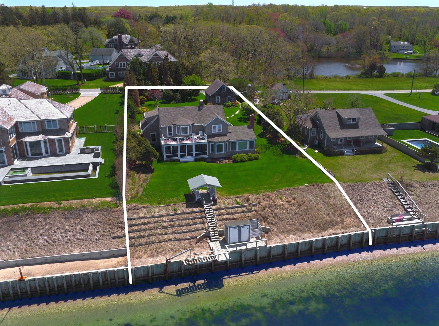 Here is your chance to own an extremely rare bayfront property in the prestigious and historic waterfront community of Northampton Shores in Sag Harbor, NY. The fully cleared property boasts 100 feet of bulk-headed water frontage, with magazine-worthy landscaping, and access to one of the most pristine and secluded sandy beaches in the Hamptons, adjacent to the Elizabeth A. Morton National Wildlife Refuge. Charming and immaculately maintained,