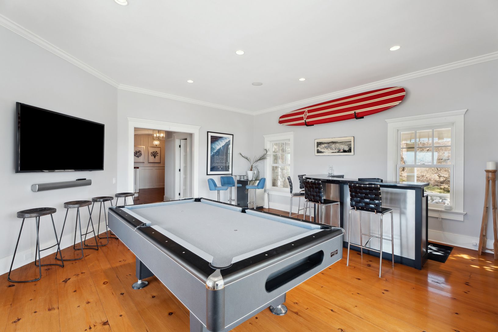 fabulous home with stunning view of Lake Montauk and the harbor with gorgeous sunsets. There are views from every angle of the home. Large open living space with a two upper decks . This home is perfect for entertaining family and friends whether splashing around the heated pool, playing ping pong or table pool in the bar room. Separate primary area with en-suite. Three guest rooms with one being an en-suite with king size bed. Bonus room ove