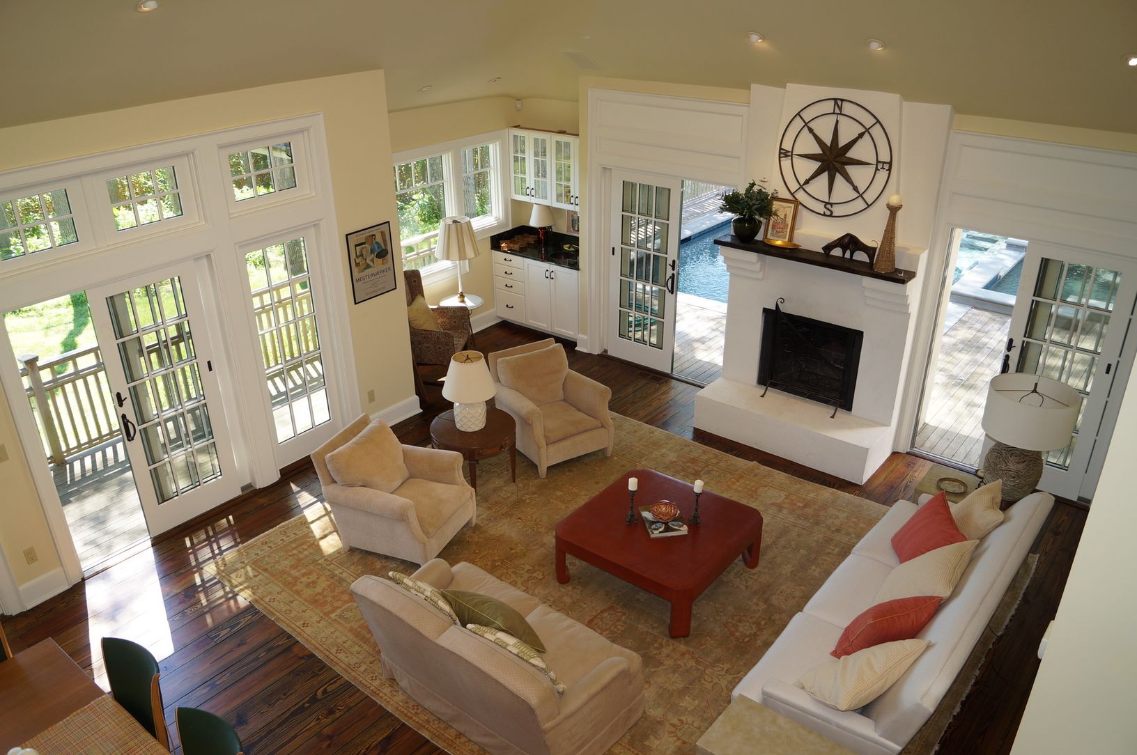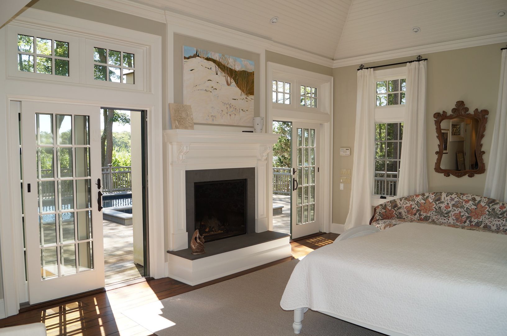 Beautifully renovated post modern with 185 feet on Quantuck Bay! With open floor plan, top of the line kitchen, living room with fireplace and wet bar, master suite, junior master, each with waterside decking and amazing views and an additional guest bedroom and bath. Complete with a dock, landscaped property, three fireplaces, two-car garage, year-round hot tub, generator and a heated gunite infinity pool. First Offering! $2,695,000
