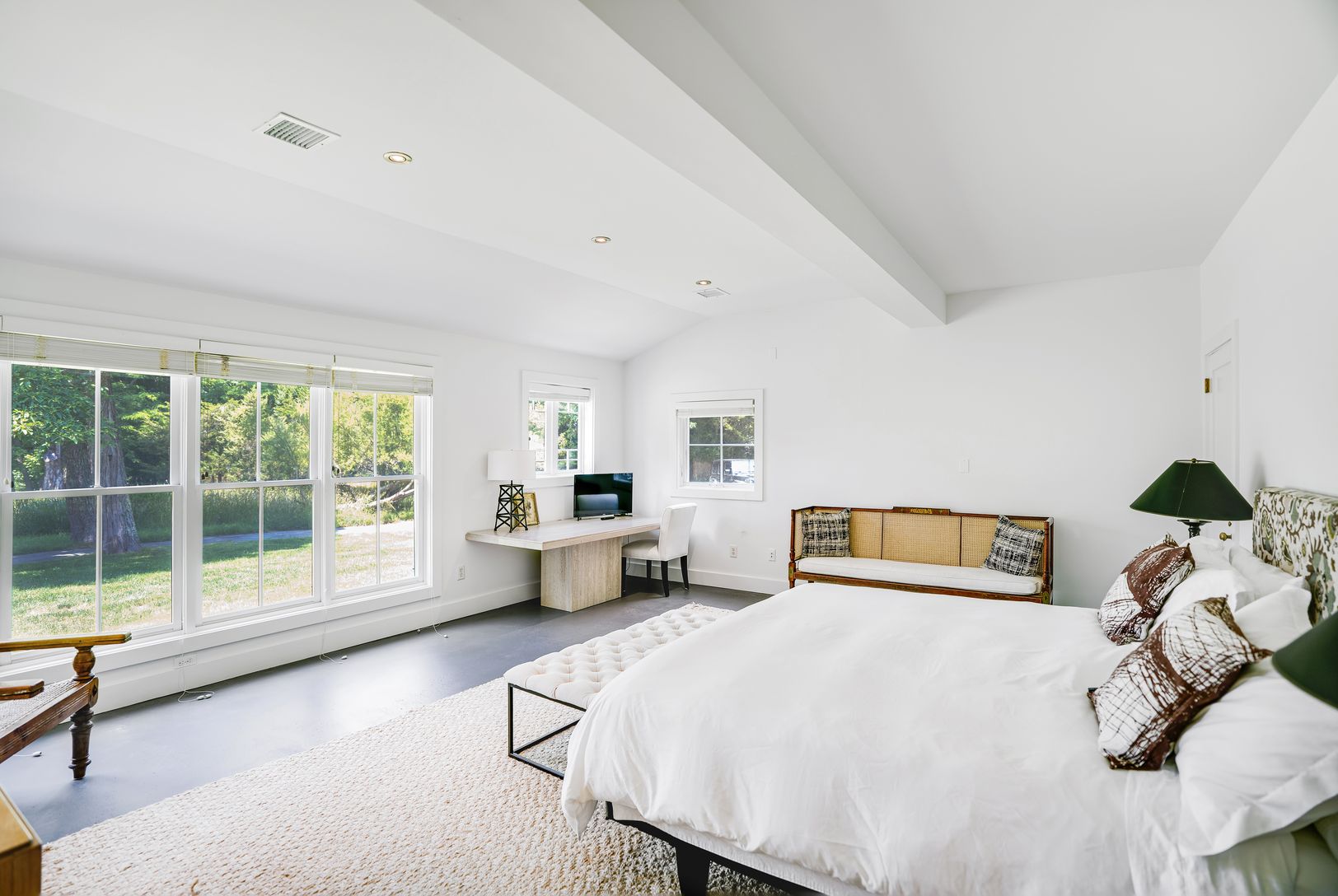 Recently renovated in 2021, this captivating loft-style barn boasts contemporary features, including a heated swimming pool surrounded by expansive mahogany decking and an electric awning. Situated within the Rawson Estates bay front community, it grants exclusive access to a private beach and mesmerizing water panoramas. Spread across 5,000 square feet, the barn comprises four bedrooms and three baths, with ample living spaces on both floors,