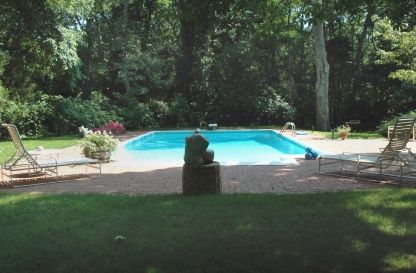 Located on a quiet shady lane and a ten minute walk to a private beach, this spacious contemporary sits on a generous 1.2 acre parcel. The secluded yard is surrounded by woods yet boasts a big sunny yard with 20 X 40 heated gunite pool. The living room offers abundant natural light, since it rises above the rest of the home allowing windows