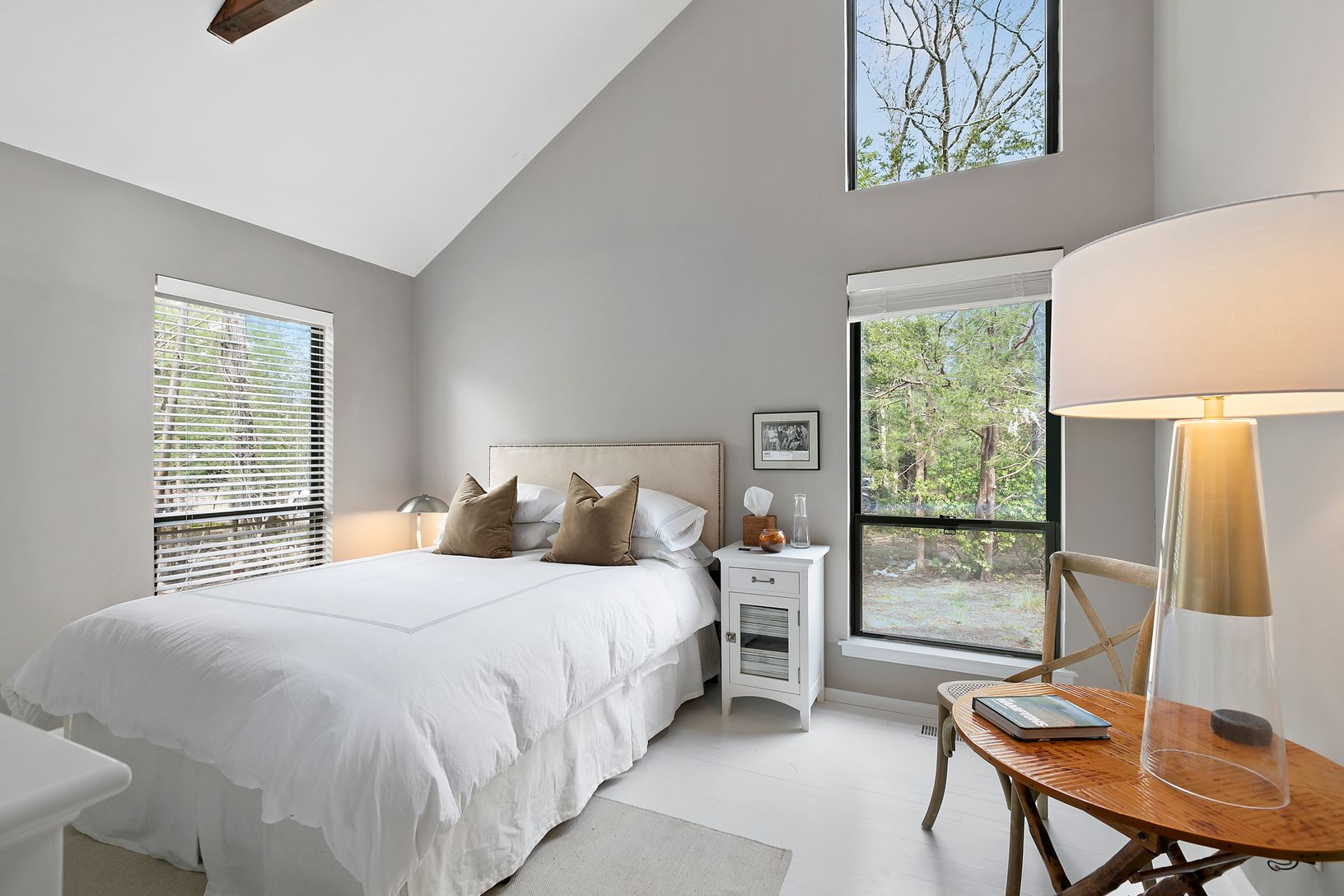 Chic and cozy Contemporary home just listed in Settlers Landing! Features include 3 bedrooms, 2 bathrooms, living room with fireplace, kitchen, dining area, and an open floor plan that makes indoor/outdoor entertaining a breeze! The light, bright and airy 1,800 square foot residence is sited on almost one half acre, with mature landscaping, outdoor decking and a heated pool! Located near the bay, and only a short drive to town, this is the per