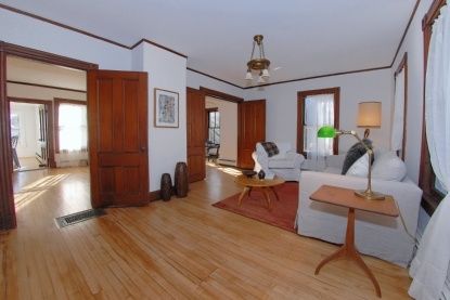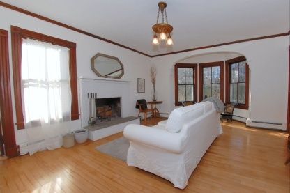 This 1898 Farmhouse set on 1.35 +/- acres has many original details and has been brought up to date with marvelous flair by its owner, a designer. Enter through a charming screened porch, to the entryway and front parlour. Beyond that awaits a spacious living room with fireplace and bay window, a formal dining room, a sleek chef's kitchen with island and lots of natural sunlight. A guest bedroom with full bath is on the main floor. Upstairs, a