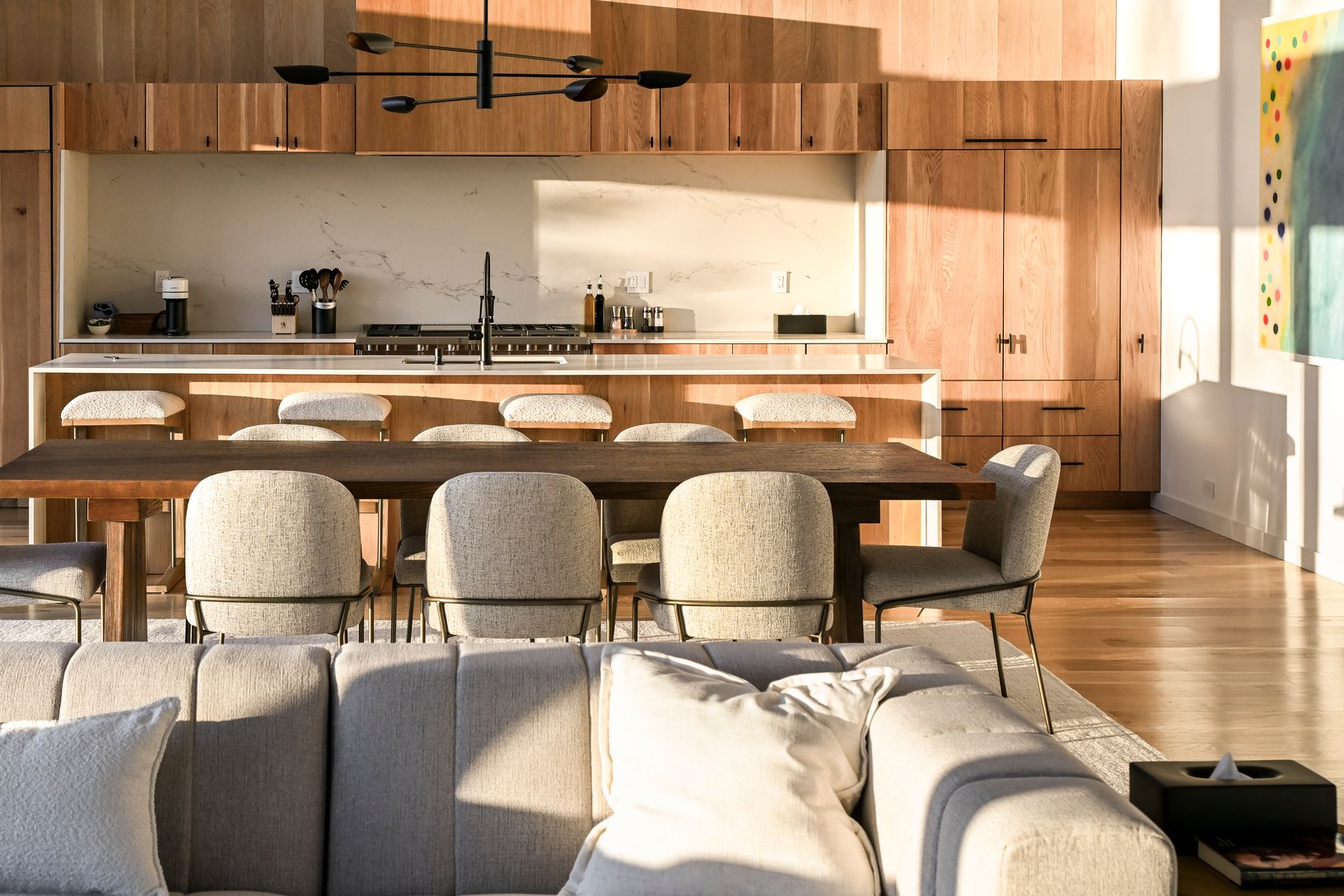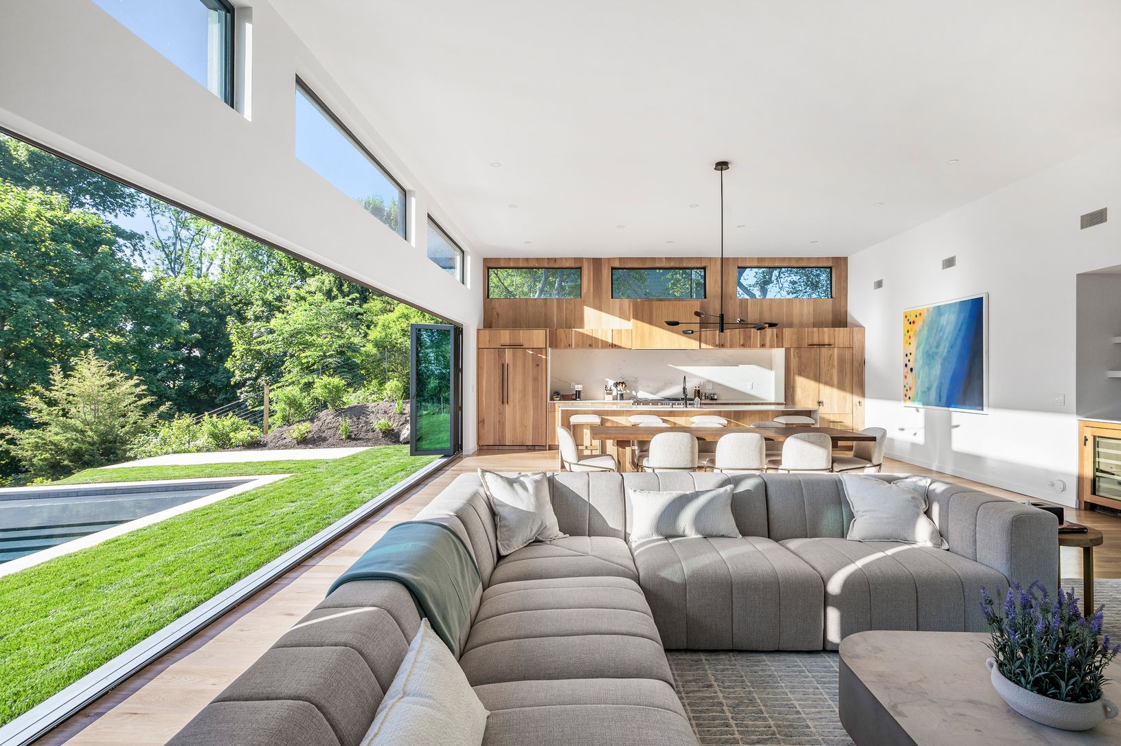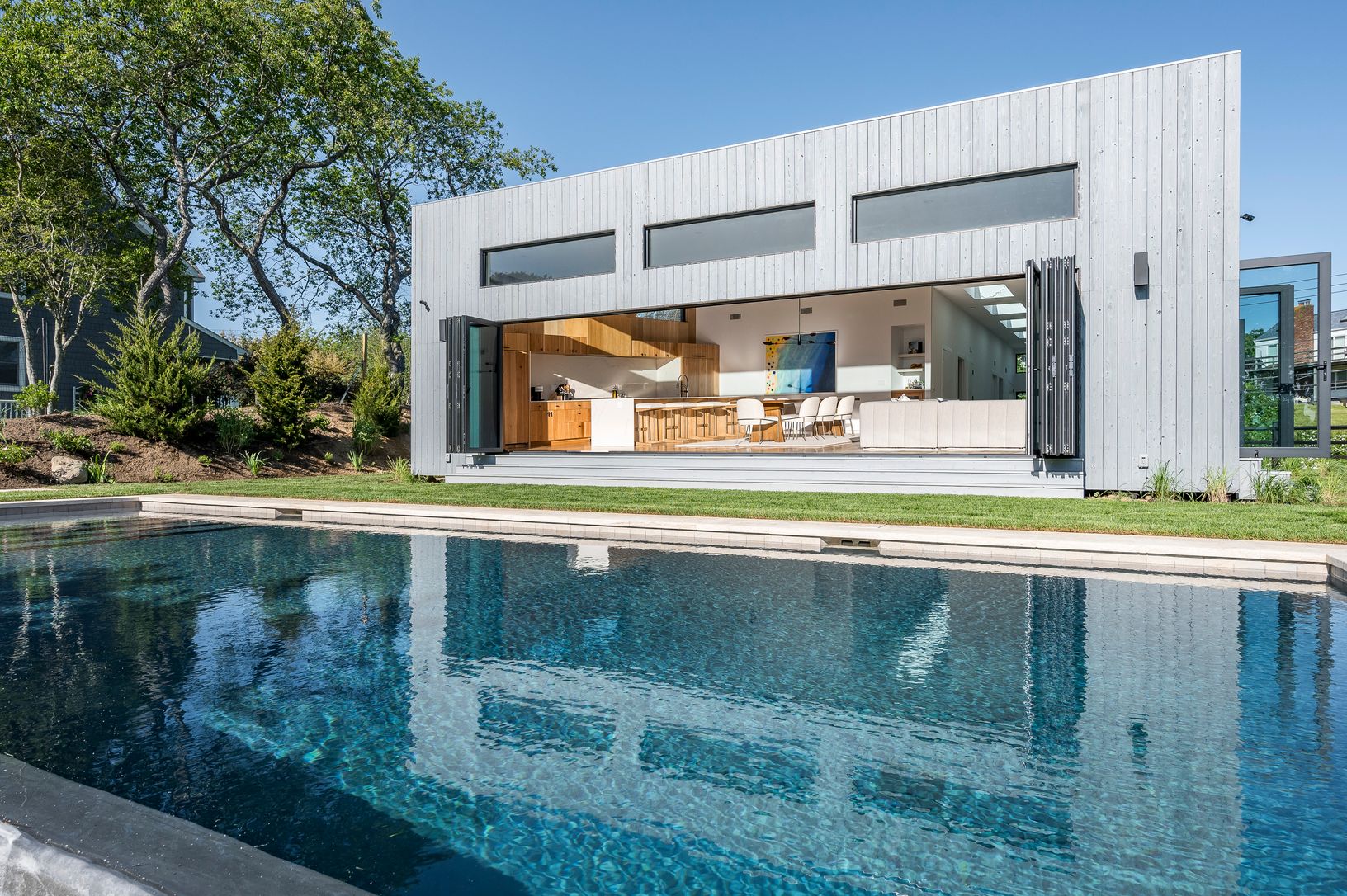 Fully furnished & move-in ready. Welcome to the pinnacle of design innovation and meticulous craftsmanship, now complete and move in ready. This architectural gem is a single-story steel-framed smart home offering a seamless fusion of form and function with a facade of vertical Japanese cypress boards in light gray alkyd by Nakamoto Forestry. Oversized windows and doors and 12' ceilings throughout infuse every room with natural light, whi