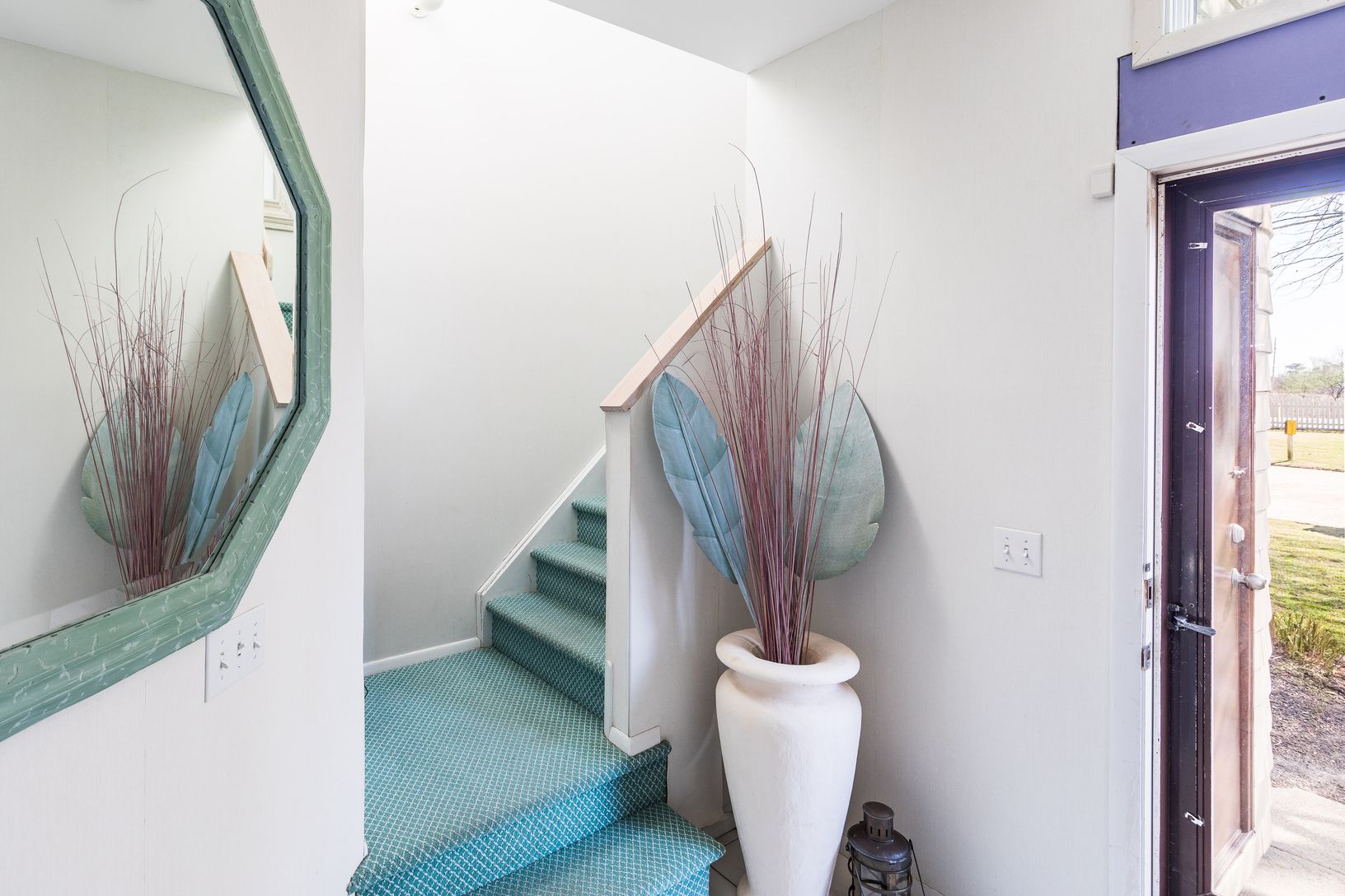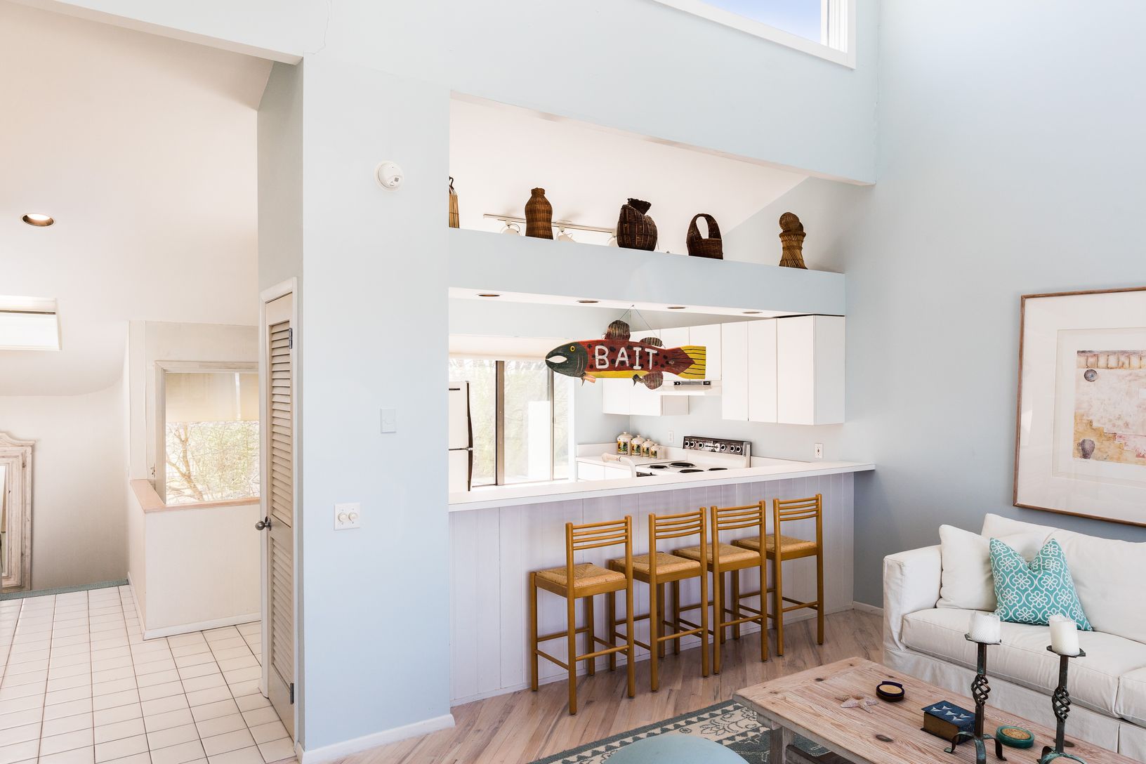 Located in Montauk's Stepping Stones, this condo is centrally located between the ocean beaches and the harbor. On the main level there is a master suite with private updated bathroom, guest bedroom, and a full bathroom. Upstairs offers light-filled, open living spaces including the kitchen, dining area, and living room with fireplace. This open space has sliders overlooking the scenic lake. The community provides a heated swimming pool, tenni