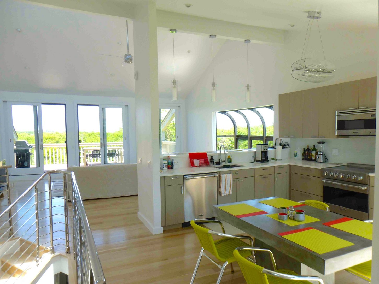 This custom finished three bedroom, two and one half bath duplex townhouse is one of the highest quality condominiums in Montauk and is located in the highly desirable Steppingstone private community. Tastefully renovated with transitional modern open floor plan, top quality finishes, and stylish designer furniture. The property is ideally located, includes a pool, is scenically surrounded by nature preserves and has beautiful views of Montau