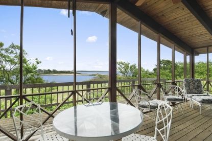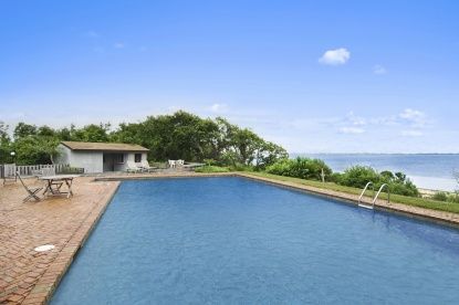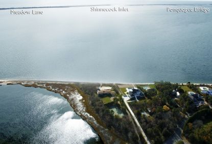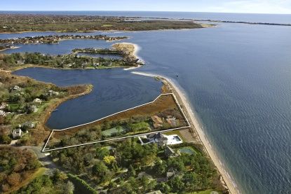 Overlooking approx. 460 feet directly on Shinnecock Bay and approx. 770 feet on Far Pond, this 4+/- acre property offers a peninsula-like setting with spectacularly endless water views. This contemporary style residence offers an open floor plan with cathedral living room, fireplaces, kitchen, screened-in porch, 6 bedrooms, 3.5 baths, and attached 2-car garage. Outside, the heated Gunite pool faces the bay, and the magnificent grounds feature