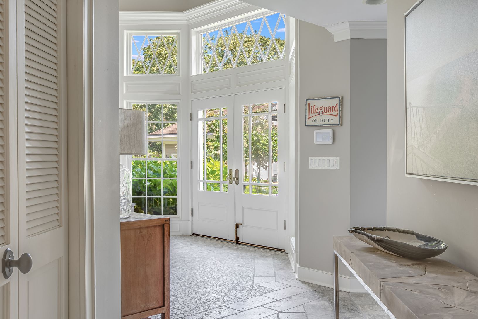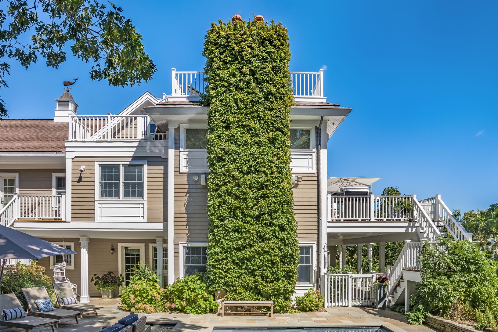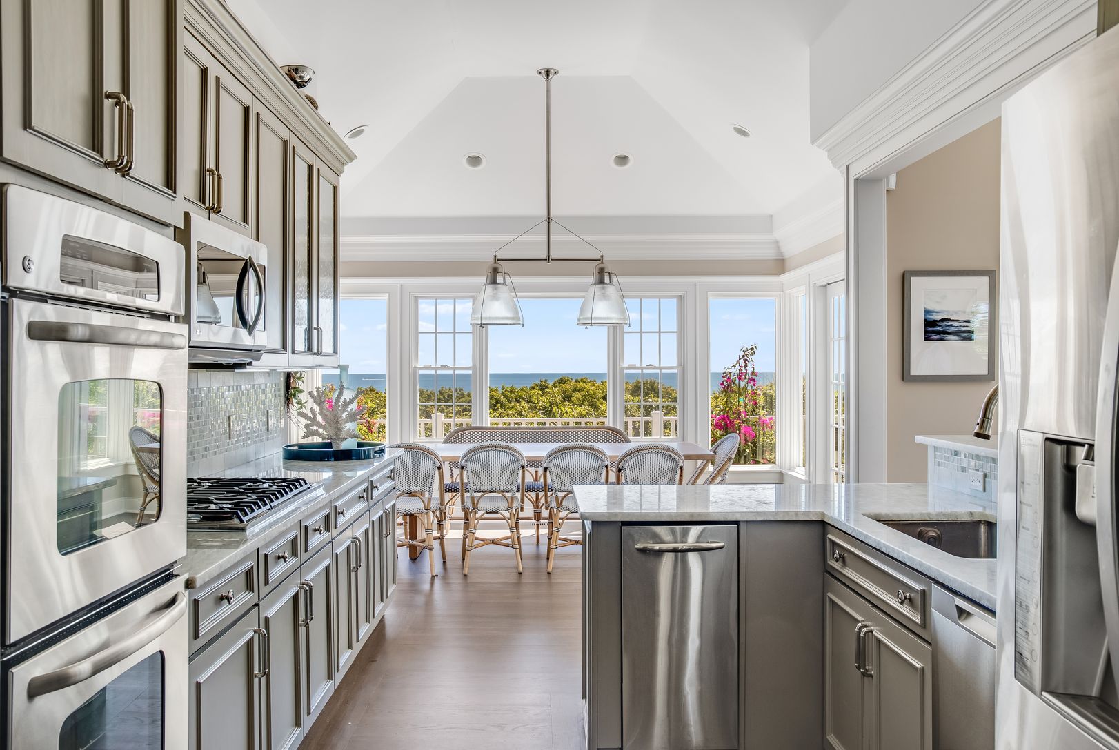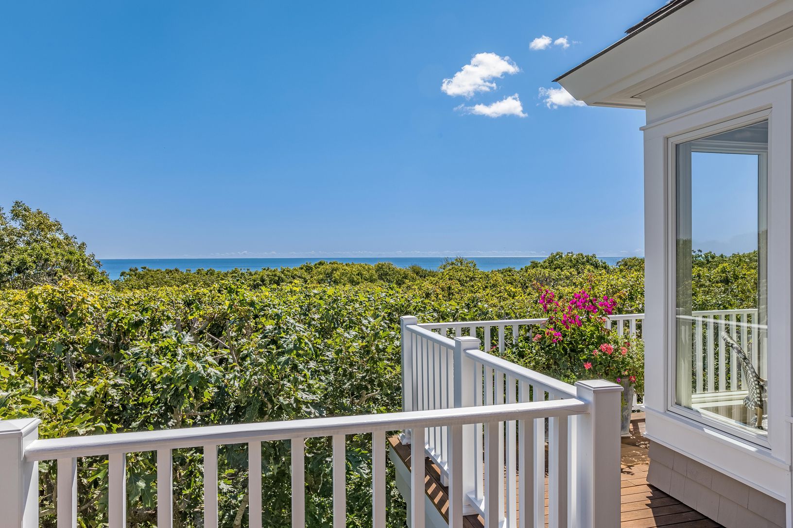 Situated on over an acre and tucked away from the road, this meticulously maintained, turn key, updated, home has stunning ocean views. Enter the property through a private gate to find a beautifully landscaped front yard with mature plantings. The entry foyer of the home is light-filled and leads to a beautiful family room with fireplace and double french doors. This first level also has a den with outdoor access, a full bathroom, laundry roo