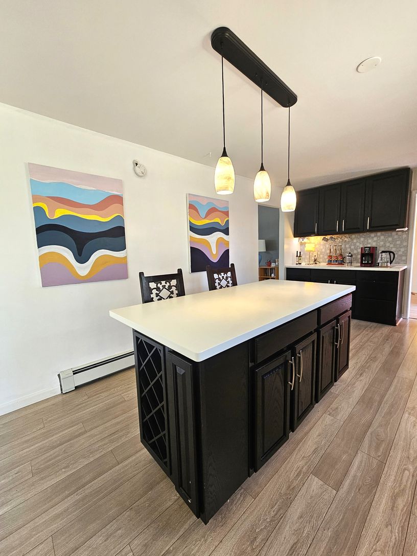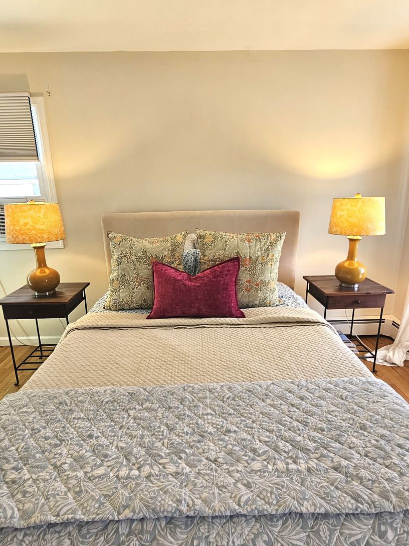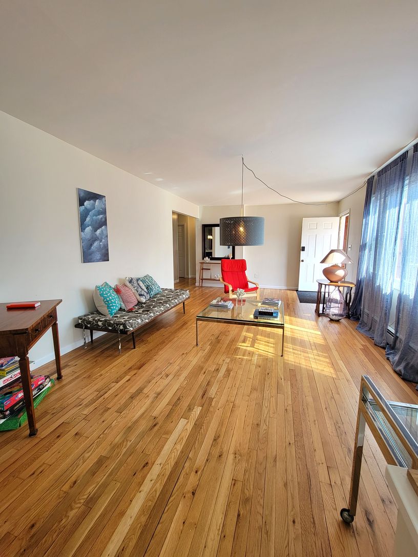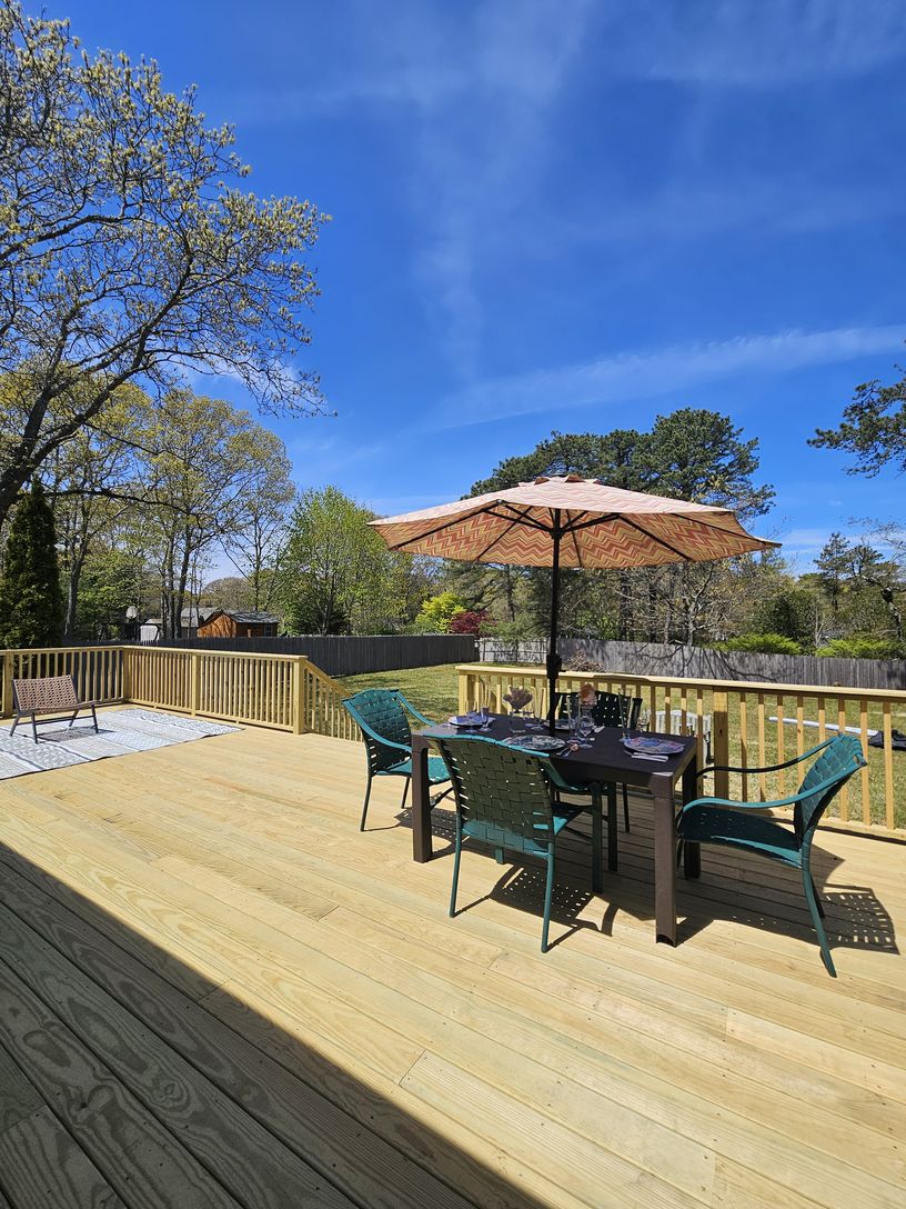 Enjoy peaceful, comfortable summer living in this Mid-Century style-Hampton Bays rental. Fully equipped kitchen. Expansive deck and yard. Bath & bedroom linens supplied. A/C window units. The beaches are minutes away. Beach chairs, umbrellas, towels, cooler, noodles and wagon supplied. A one time house cleaning is included in monthly rental. The amazing Uncle Giuseppe's Marketplace- offers delivery service to Hampton Bays. Second full bat