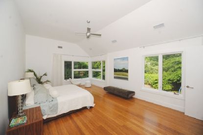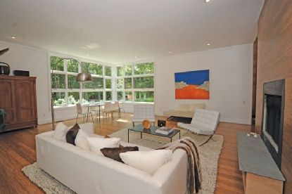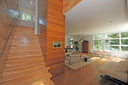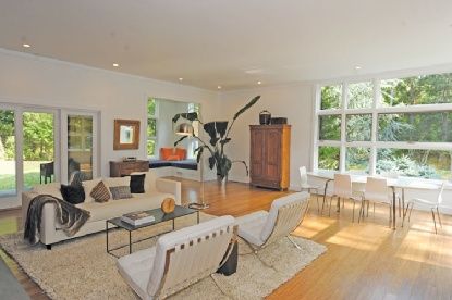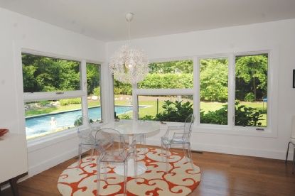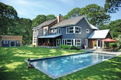 At the end of a private cul de sac, next to a nature preserve, and two blocks from a bay beach sits this modernist interpretation of a Hamptons home. Custom designed and built in 2007, on a cleared lot, this spacious 4 bedroom, 3.5 bath house offers everything you've been looking for: bright open living spaces, walls of windows, a chef's eat-in kitchen overlooking the heated gunite pool and privacy. On the first level is a spectacular living r