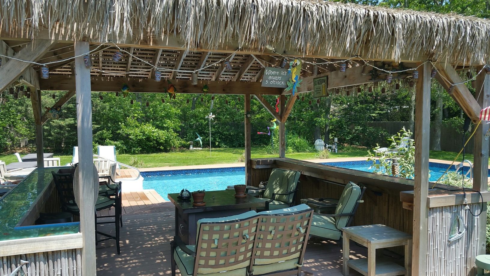 Sold & Closed Team Ribeiro - Kurosz!Great 3 Bedroom + Office/Nursery, 3 Bathroom Expanded Ranch in East Quogue with 2131 Sq.Ft. of Living Space - Enclosed Glass Sun Porch, Full Basement with Bathroom, Hardwood Floors, Large Eat-in-Kitchen with Center Island Dining Bar, Outdoor 6-person Hot Tub, 18' x 36' In-Ground Vinyl Swimming Pool heated by solar panels. Entertainer's surround brick patio and adjoining covered Tiki hut with propane Fire