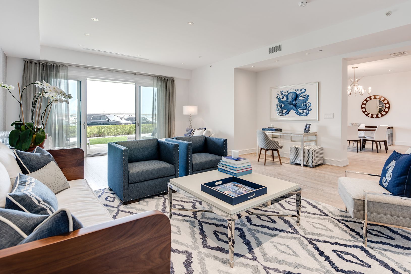Move right into this 2,308+/- sq. ft. residence and take full advantage of the Hamptons resort lifestyle, while also enjoying all of the conveniences of carefree, condominium living. This two bedroom, harbor-front home features an open layout designed to accentuate views of the nearby marina. Large glass doors from the dining room and the great room open onto a 467+/- sq. ft. covered bluestone terrace and a 550+/- sq. ft. private yard overlook