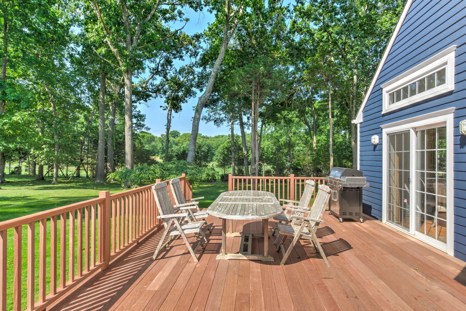 Mint condition 4 bedroom, 3 1/2 bath farmhouse with first floor master and additional second floor master. Great location with deeded water access and direct frontage on Noyac Golf Course. Detached oversized 3 car garage, mature landscaping, and large entertaining deck. Room for pool.