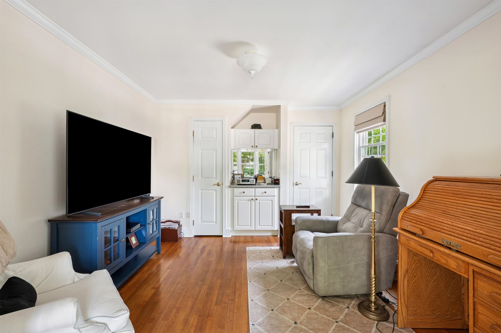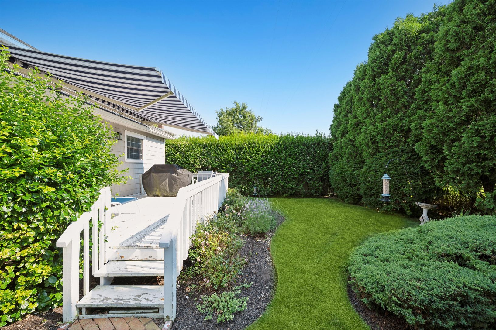 South of the highway featuring southwestern sun exposure. Three bedrooms, 2 baths, eat-in kitchen, dining room, living room w/ gas fireplace. Front parlor, 1st floor den. Detached garage. Full unfinished basement. Exterior back deck features motorized awning. Room for a small pool. First-floor bedroom and bathroom. Easy proximity to Southampton Village shopping, dining and world-class sugar-sand ocean beaches. Rare first offering....