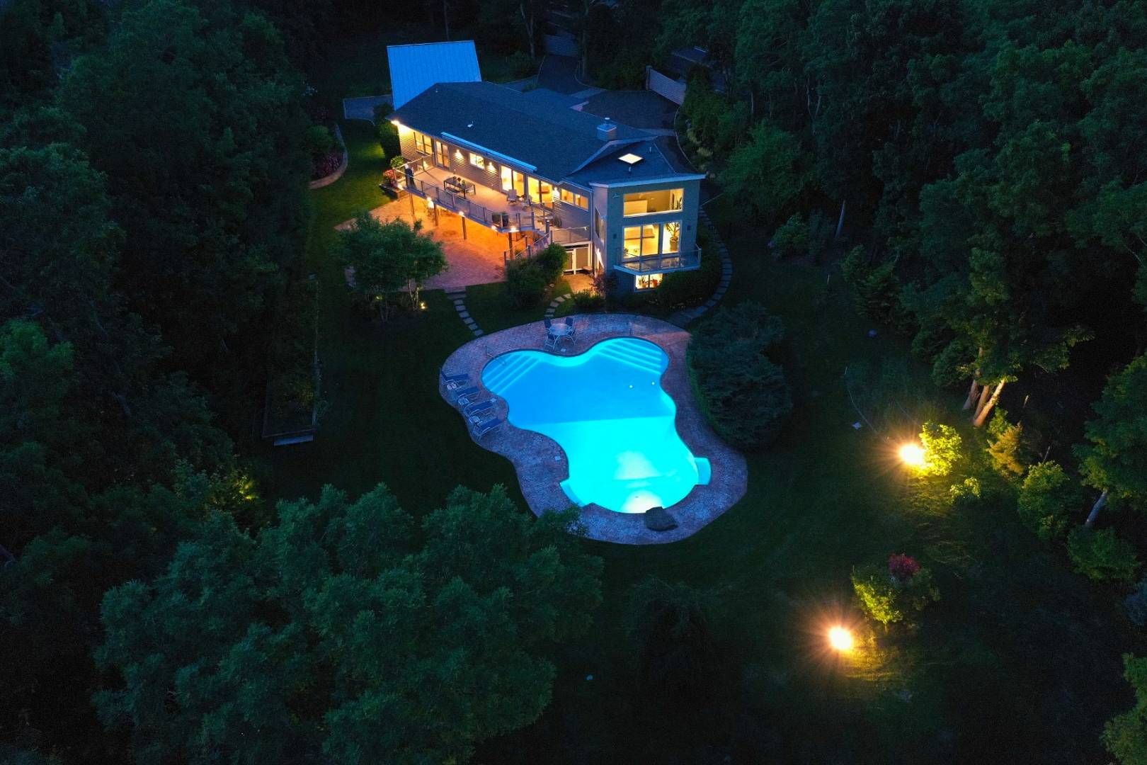From your initial approach, you sense there's something very special behind the automated modern gate... and you would be correct. Stepping in the front door you recognize a cool modern feel that is not always easy to capture, but here that desired result is executed perfectly. Open entertaining spaces on two levels draws you further through the 4000 square feet of living well. The home is brilliantly designed with vaulted ceilings and tons of