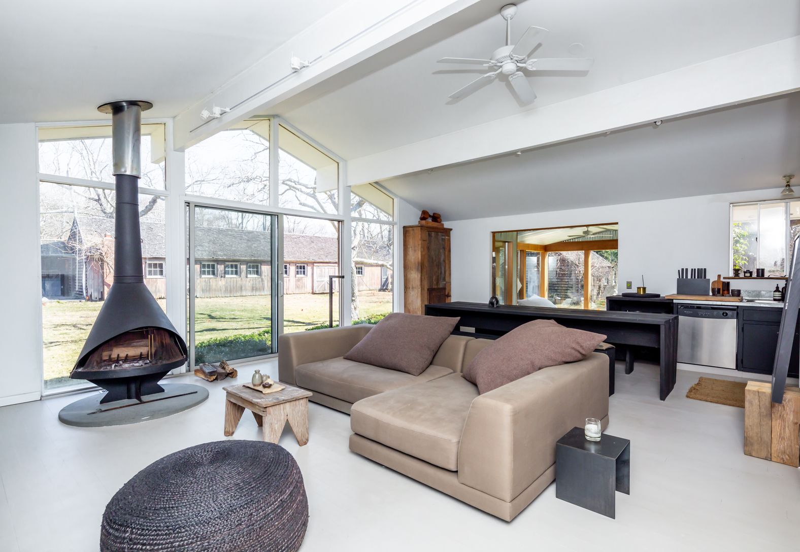 A once in a lifetime opportunity to own a mid-century modern home circa the 1960's with two large barns on a pastoral 1.36 acre property in the heart of Springs. The famous artist Hedda Sterne built the house in 1967 after making the barn her studio.This large barn is circa the 1900's and was formerly used as Firehouse and offers great space for an artist studio as well as a bonus area where there is a covered area to take in the bucolic prope