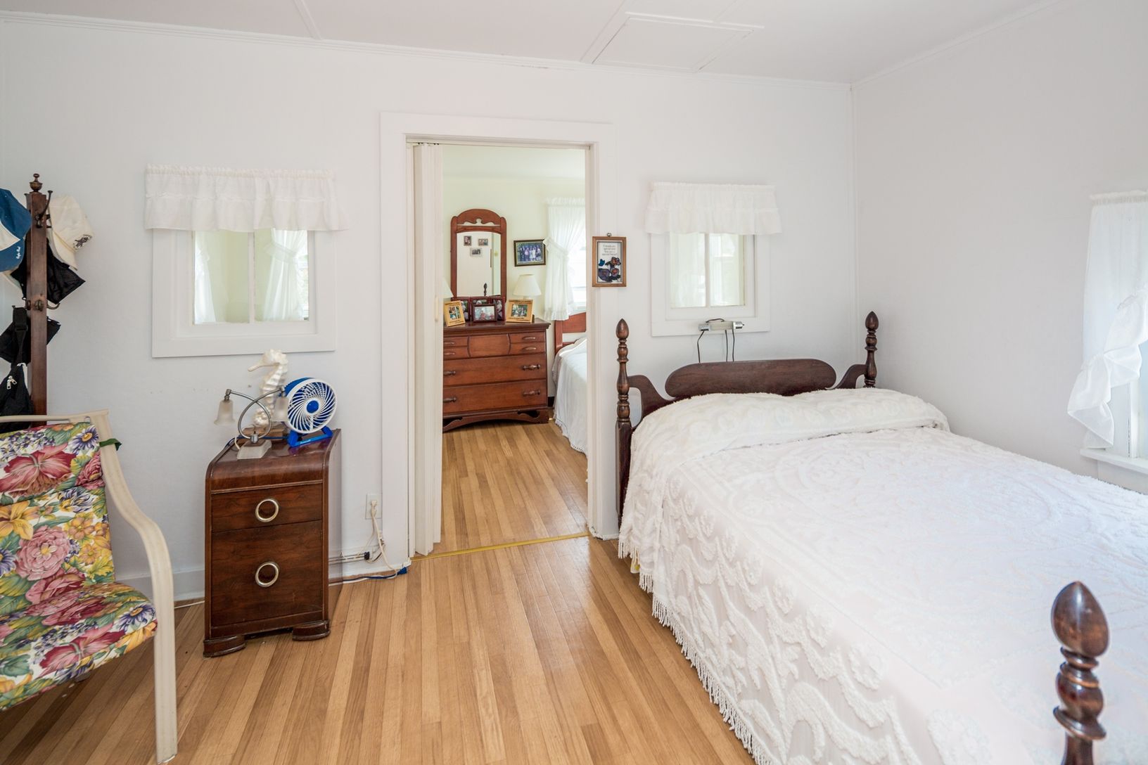 The cottage includes large kitchen with 2 bedrooms and one bath, though the current longtime owners have configured the cottage for use as a 3 bedroom plan. The large footprint offers several interesting possibilities as a renovation, or use as is. The set