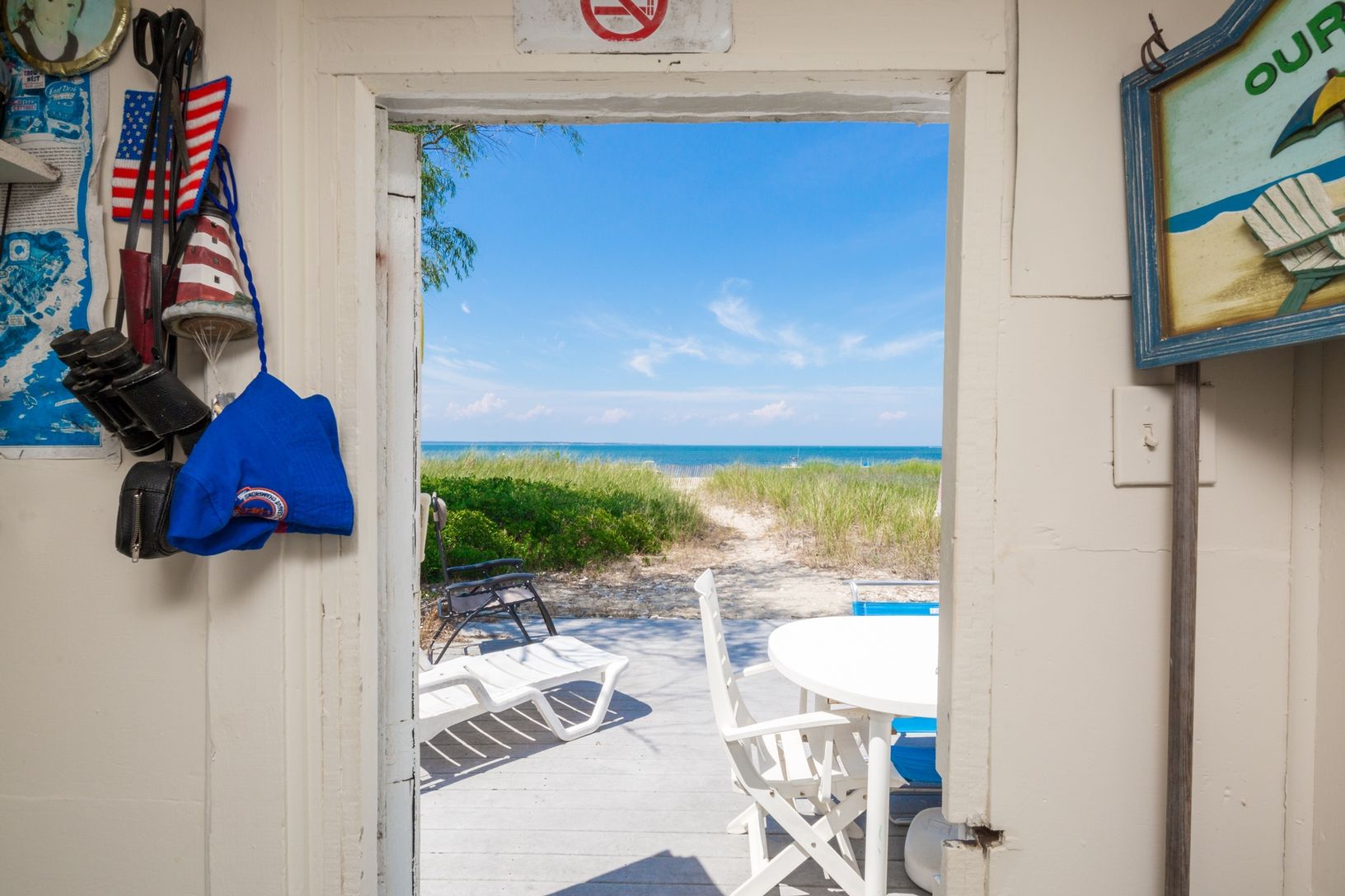 Rarely available Lazy Point beach cottage on double sized lot offers spectacular bay front location with swimming, sailing, paddle boarding or fishing right outside your back door!