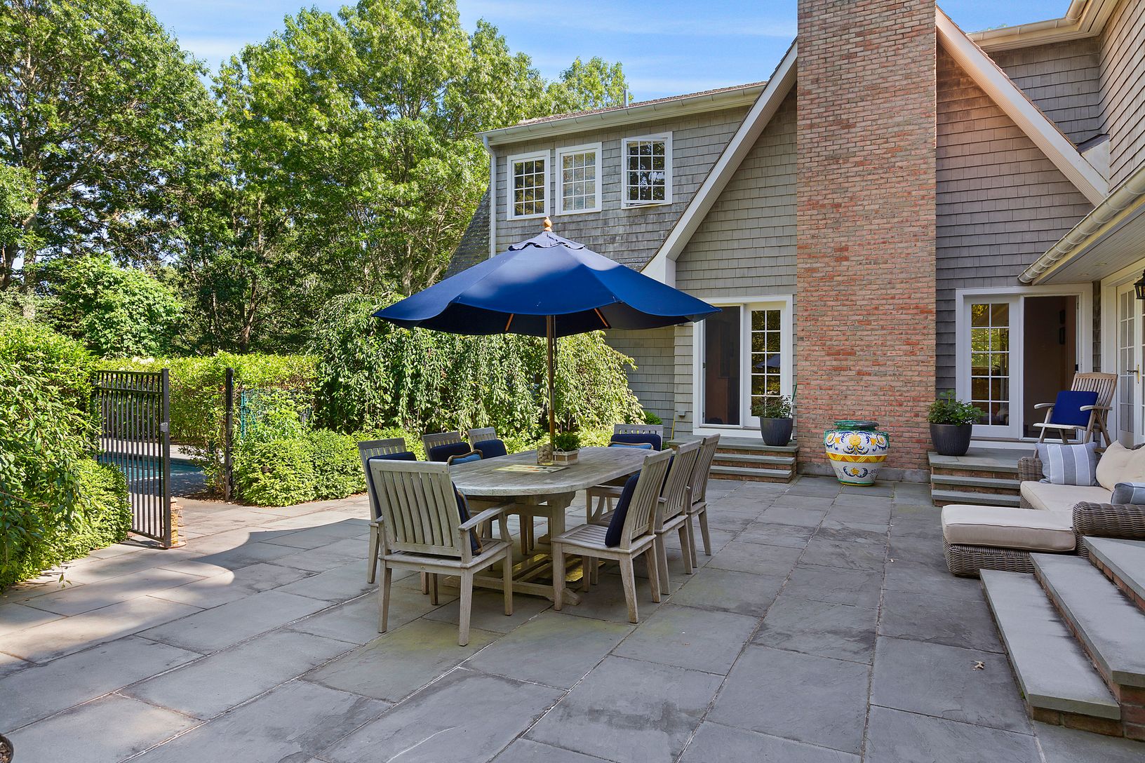 This exceptional Hamptons retreat is located in the sought after town of Bridgehampton, N.Y. Drive down a private gated driveway to find this perfectly situated five bedroom, four and one-half bath home surrounded by beautifully manicured lawns and gardens. An elegant country style kitchen with a fireplace has access to the outdoor blue stone patio. A spacious living room and formal dining area have French doors that open up to the luscious g
