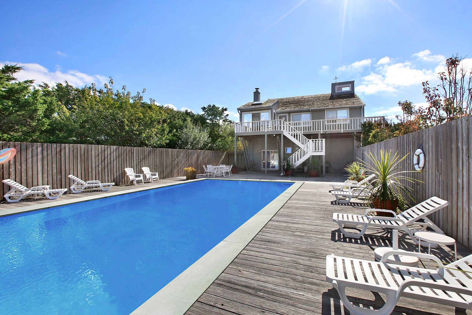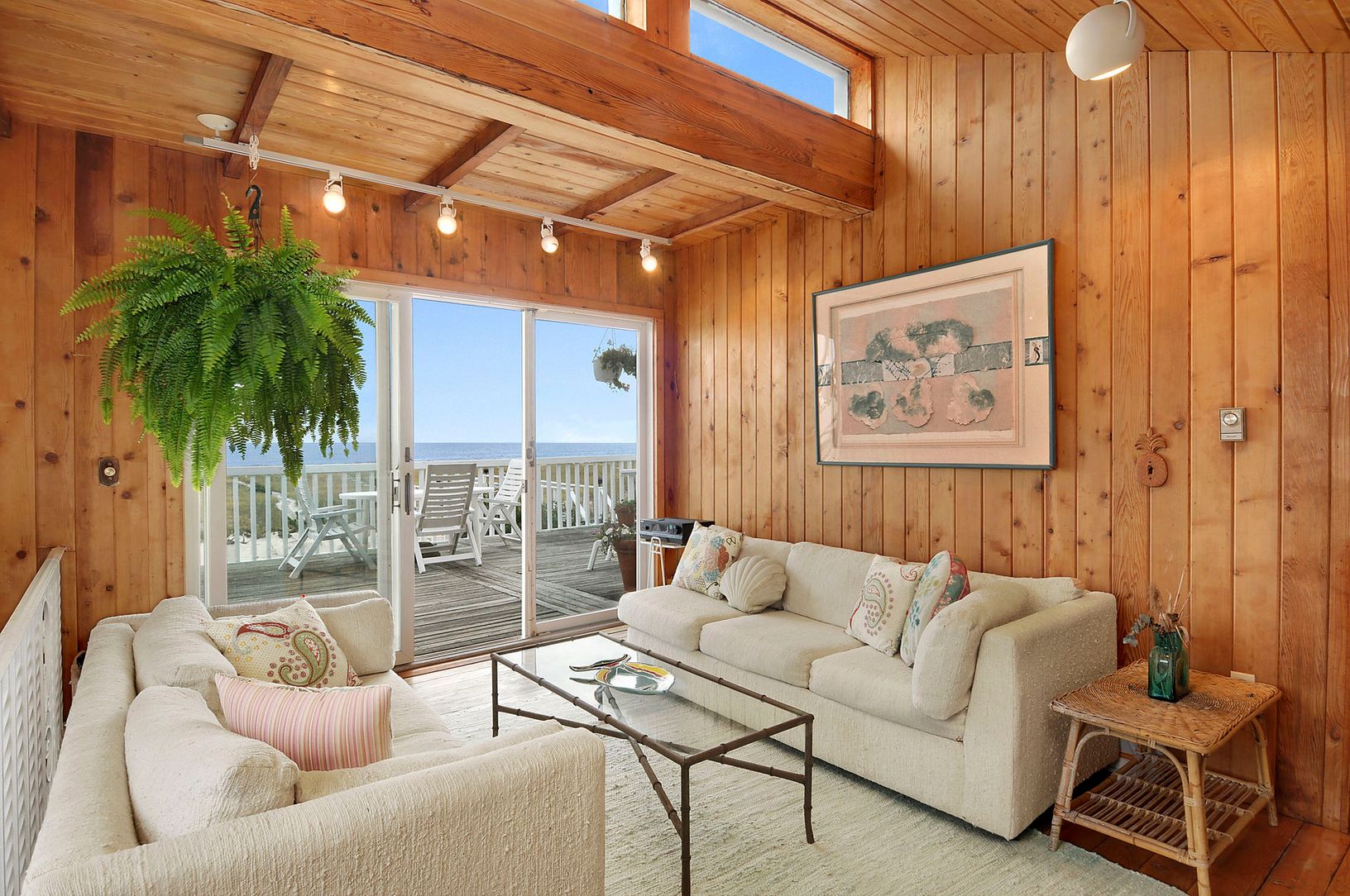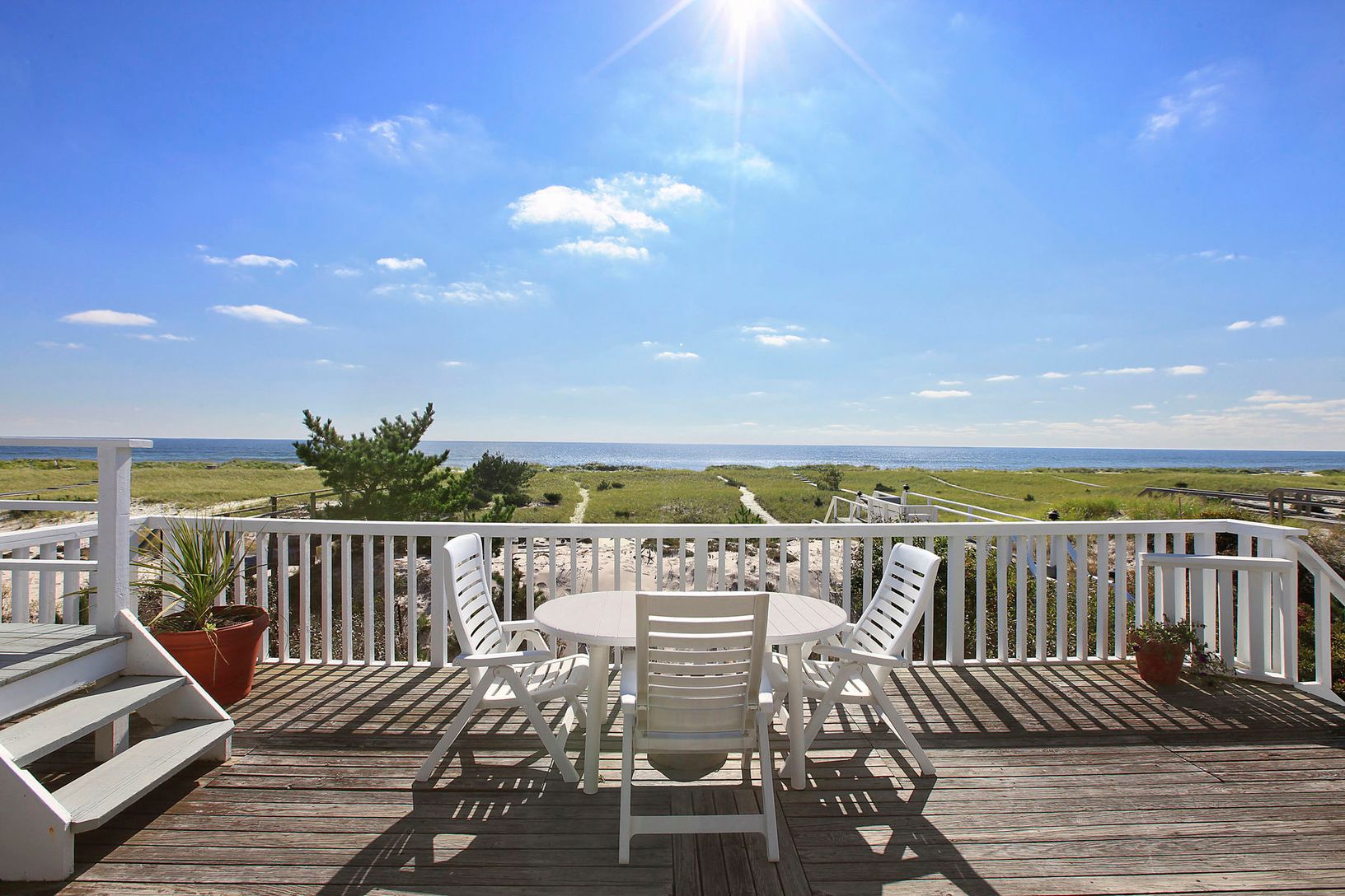The 360-degree ocean and bay views are unparalleled at this "Between the Bridges" Dune Road charmer, especially when you're sunning yourself on the 3rd floor rooftop deck. Solidly built with multiple decks for entertaining and enjoying summer fireworks, this 2,200 sq. ft. oceanfront home offers 75 ft. of prime ocean frontage as well as 4 bedrooms and 4 baths, including one located in the poolside cabana room. The house features an open floor p