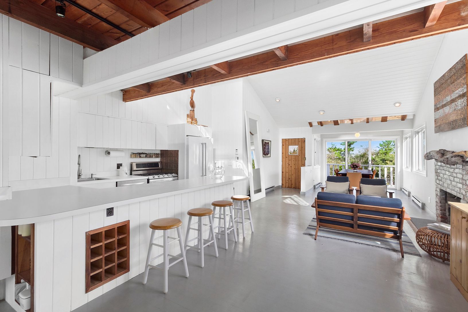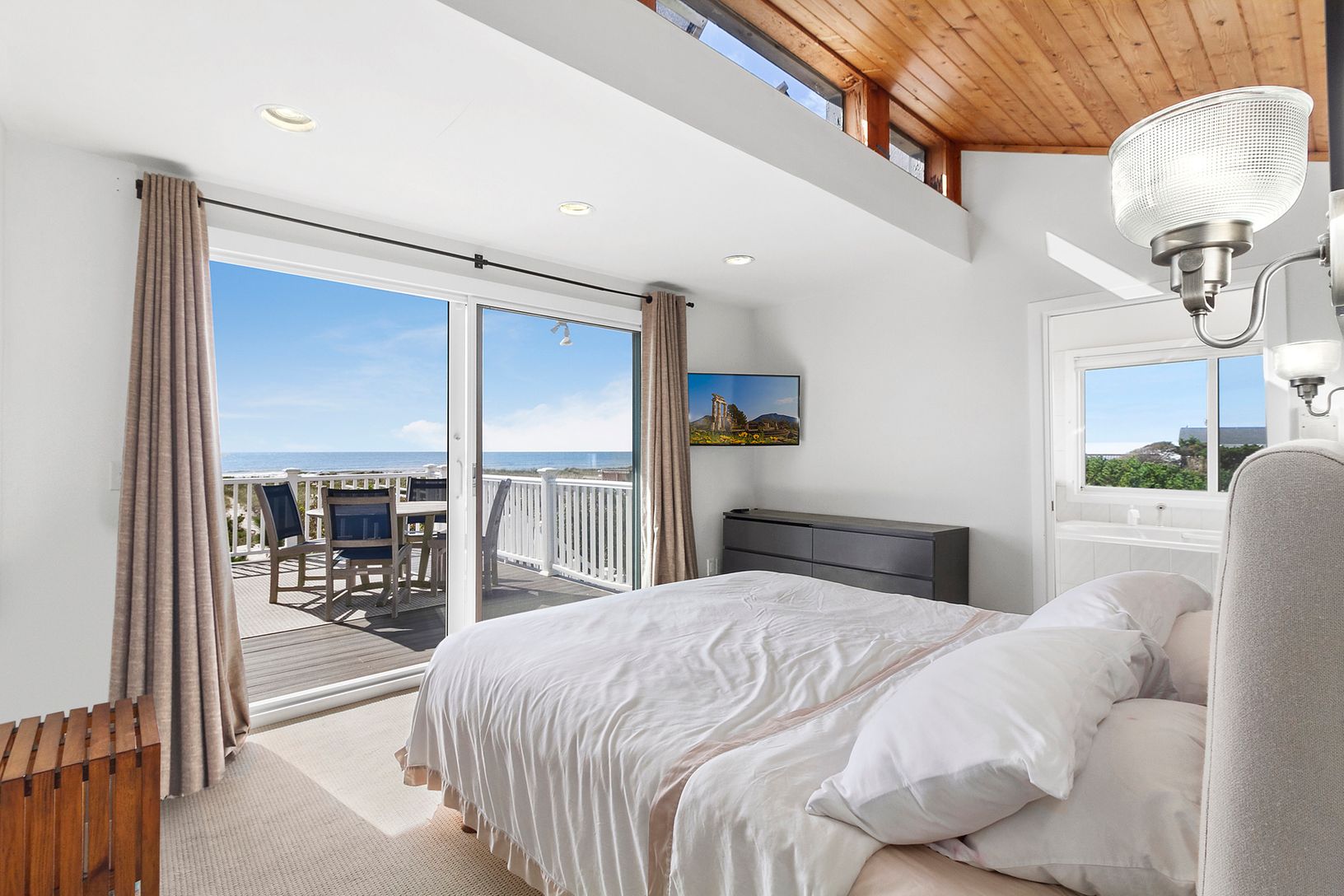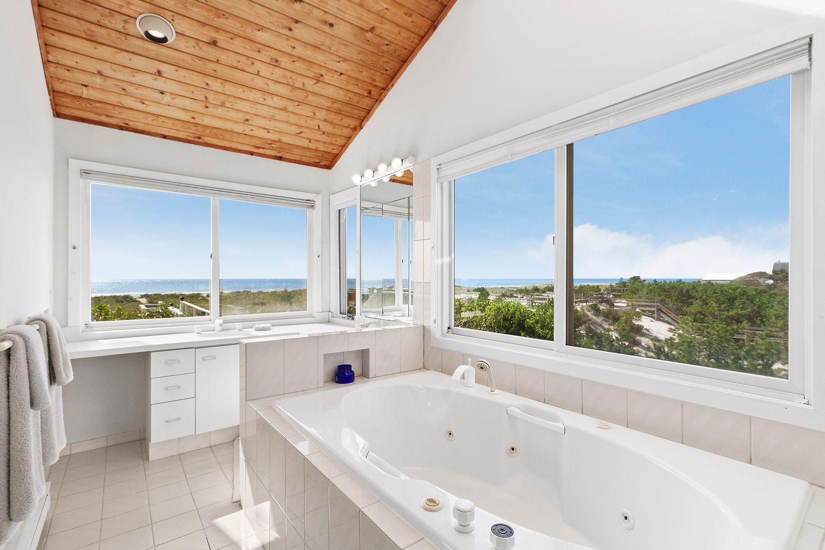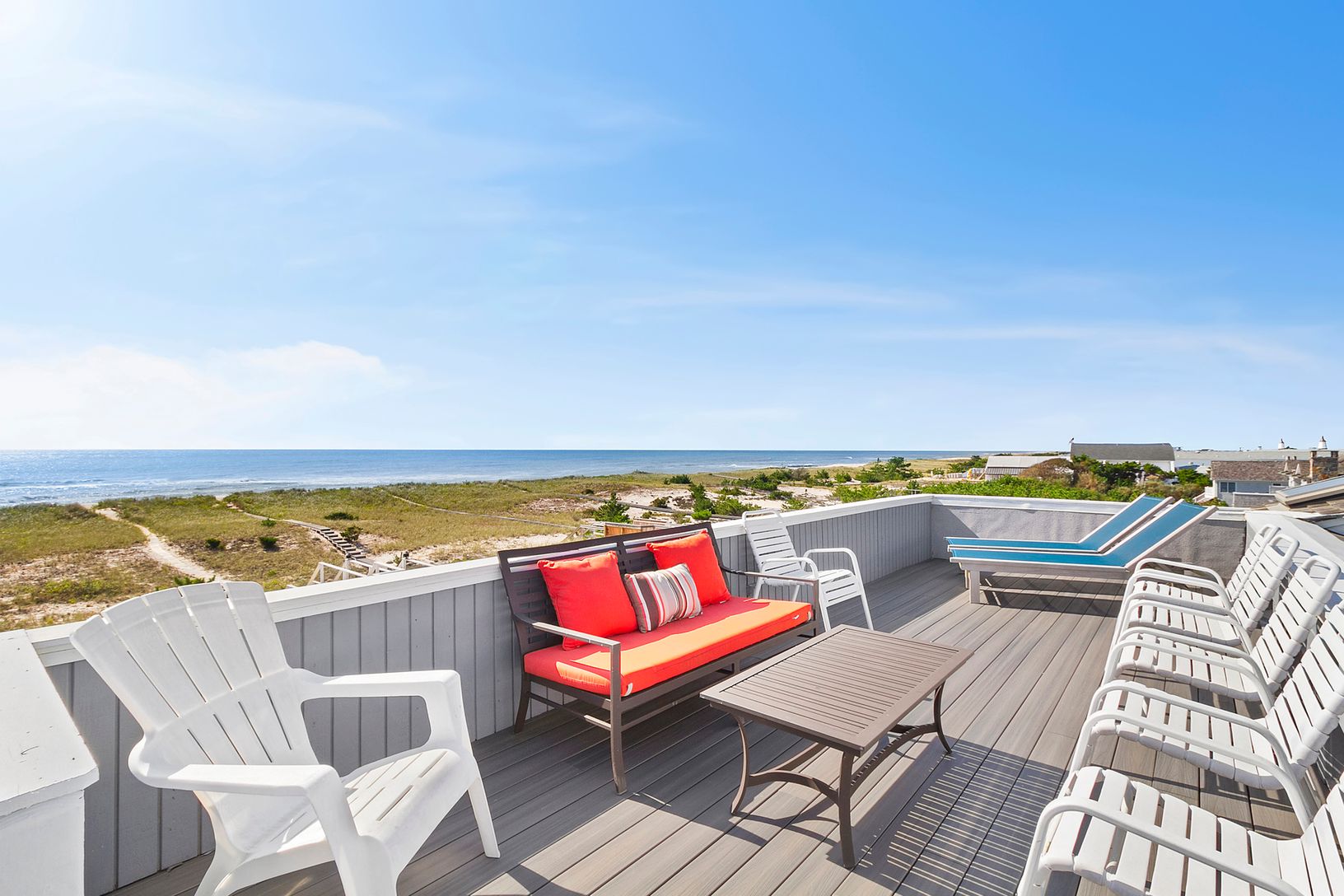 The 360-degree ocean and bay views are unparalleled at this jetty protected "Between the Bridges" Dune Road contemporary, especially from the 3rd floor rooftop deck. Solidly built with multiple decks for entertaining, this 2,300 sq. ft. oceanfront home offers 75 ft. of prime sandy beach as well as 5 bedrooms and 4 baths. The house features an open floor plan with living/dining space, wood-burning fireplace, eat-in-kitchen, laundry area and a