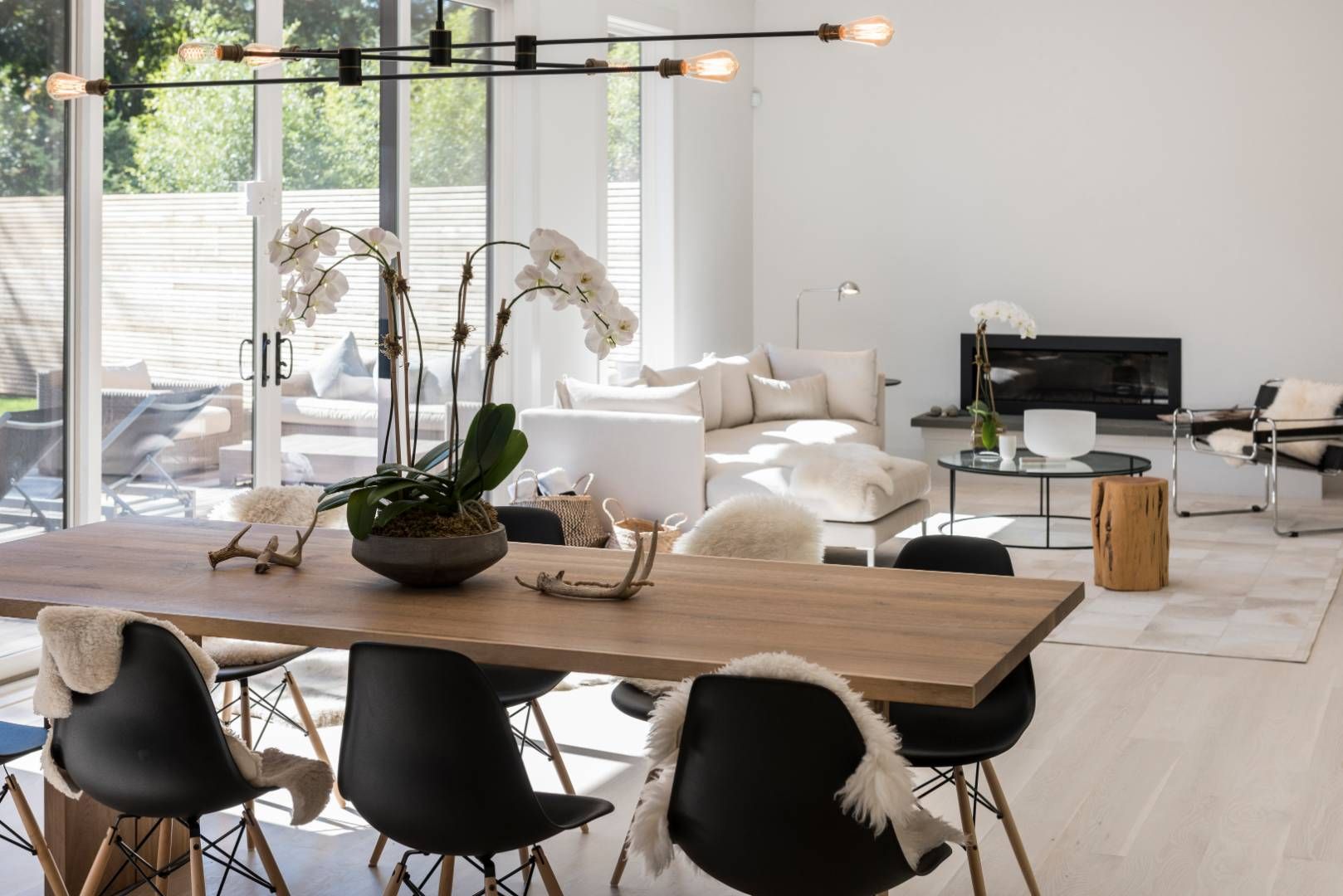 This cutting edge home is the ideal Hamptons retreat, located on a flag lot close to East Hampton village. This modern home features 6 bedrooms, 6.5 bathrooms and 5400 square feet of living space along all three levels. Open floor plan with sliding glass doors and a southern orientation taking full advantage of the sun's rays. State of the art chef's kitchen features a large island, wet bar and high end appliances. Main level junior master sui