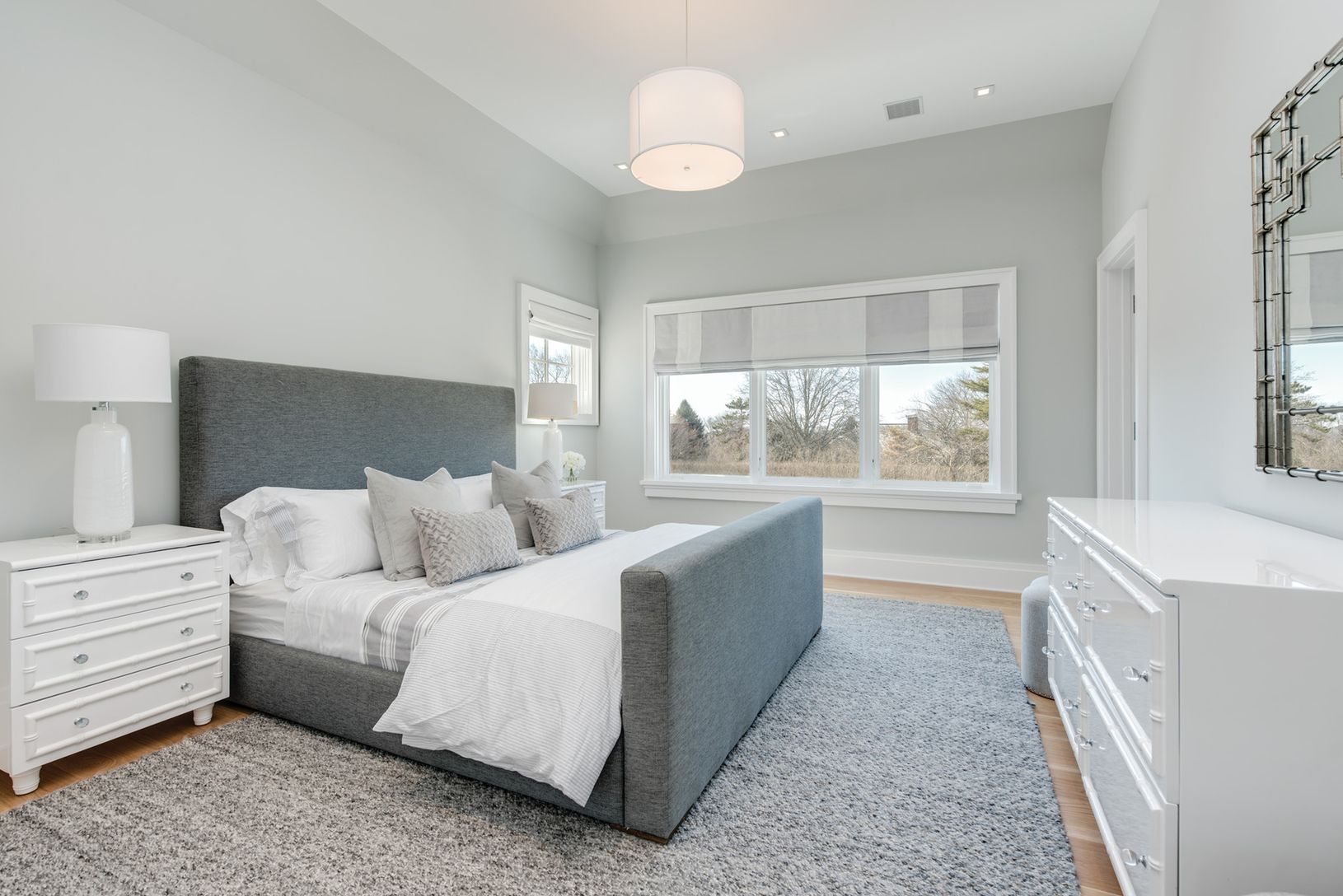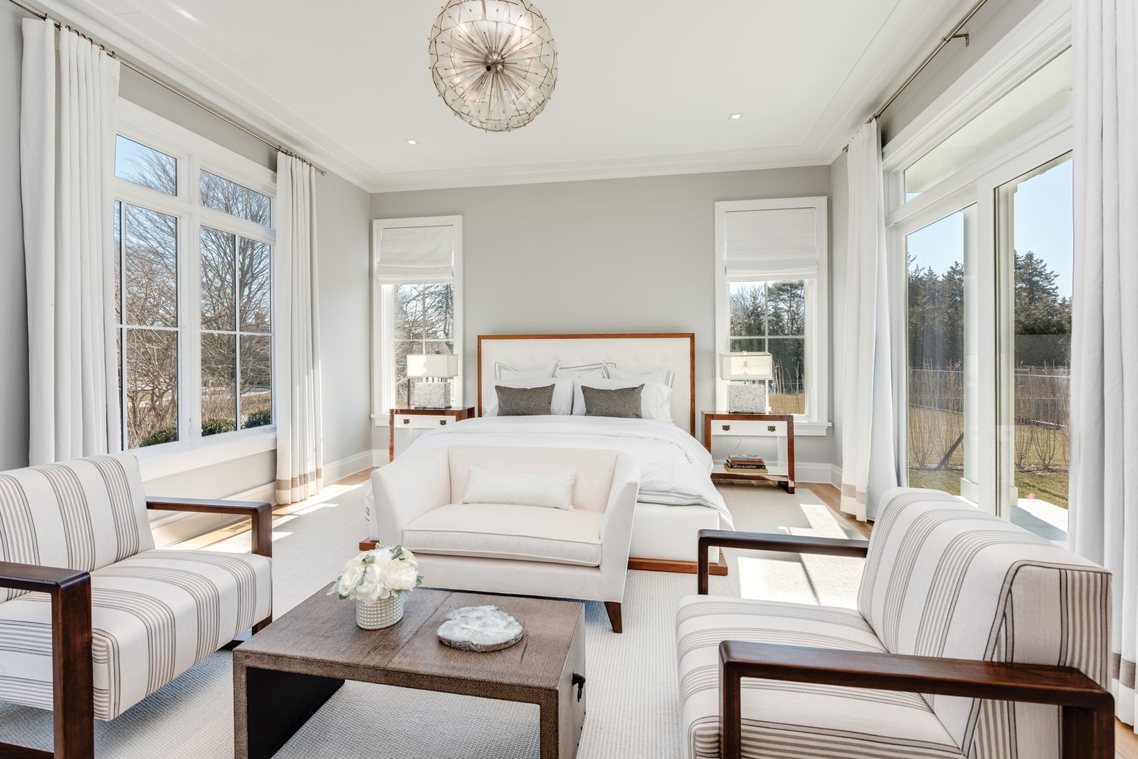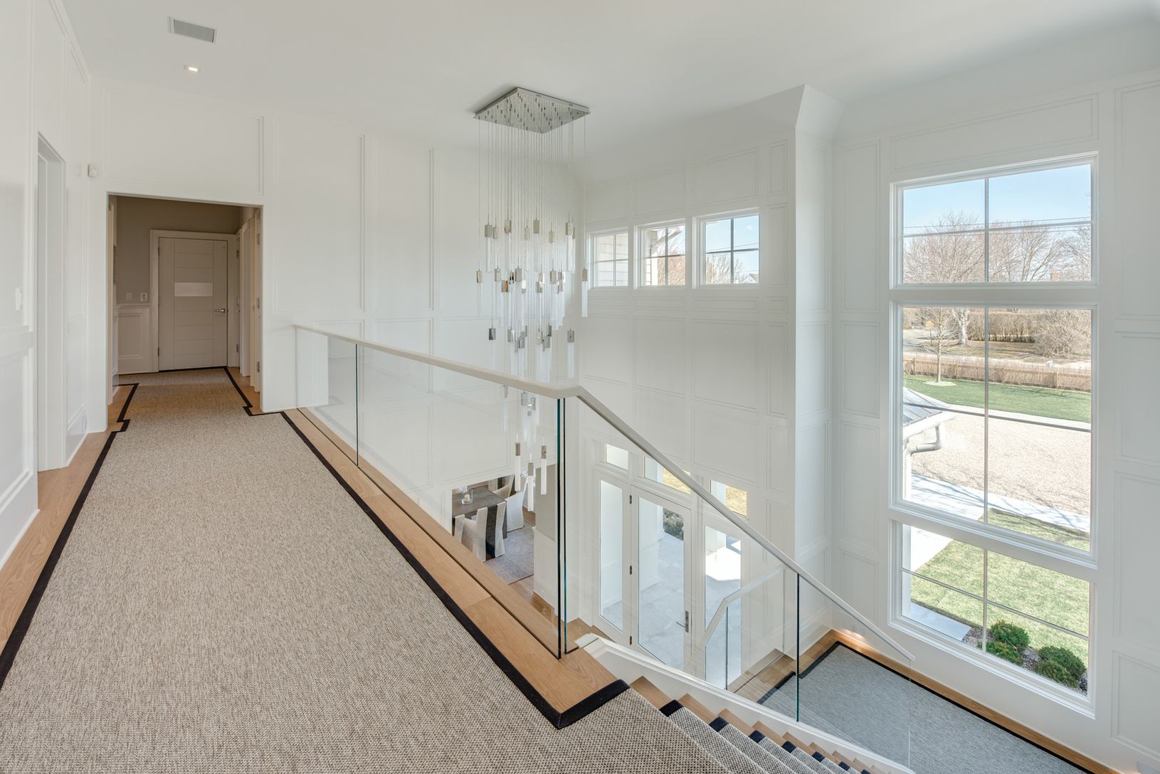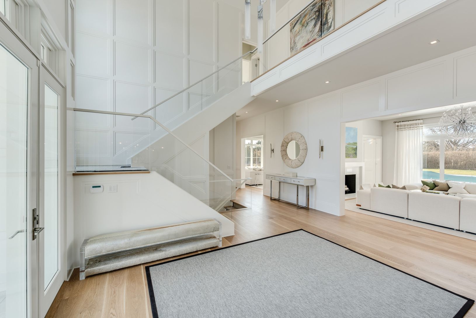South of the highway in Water Mill discover this newly completed and furnished 8,880+/- sq. ft. (inclusive of lower level) traditional on 1.38+/- acres built by Farrell. Enter the double height foyer to light-filled open living spaces featuring glass railings and including a great room, an eat-in kitchen with island, porcelain countertops and backsplashes, and high end stainless steel appliances and breakfast area, with glass doors opening to