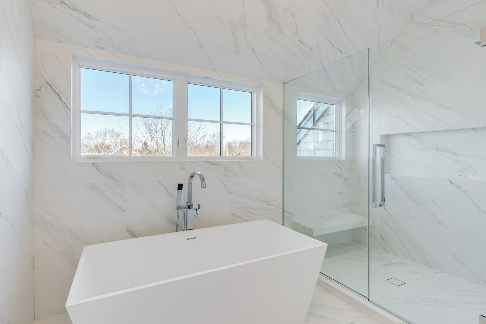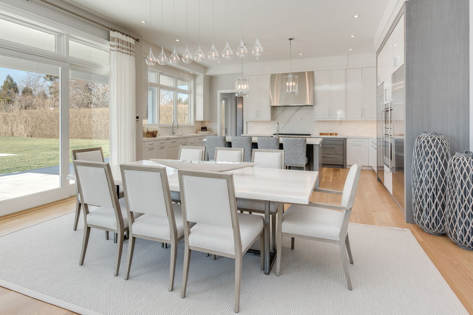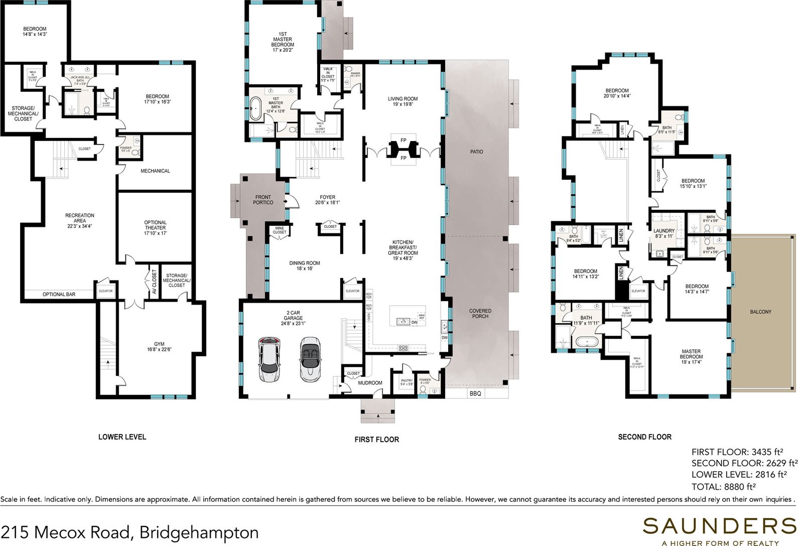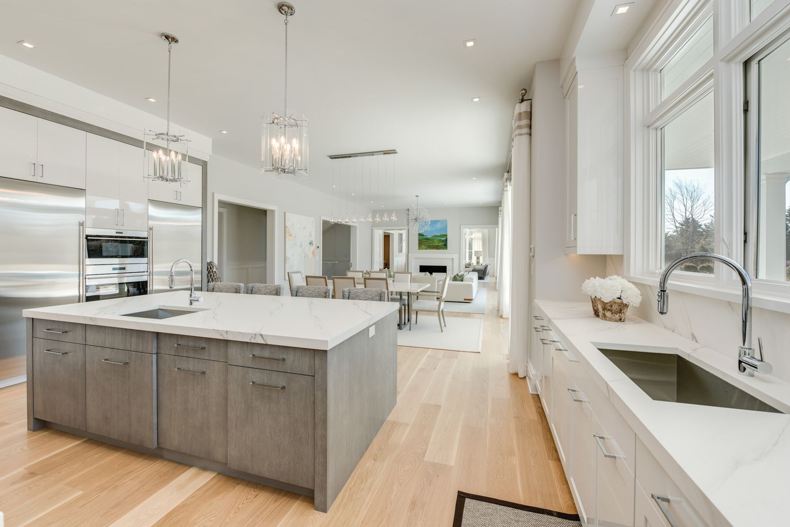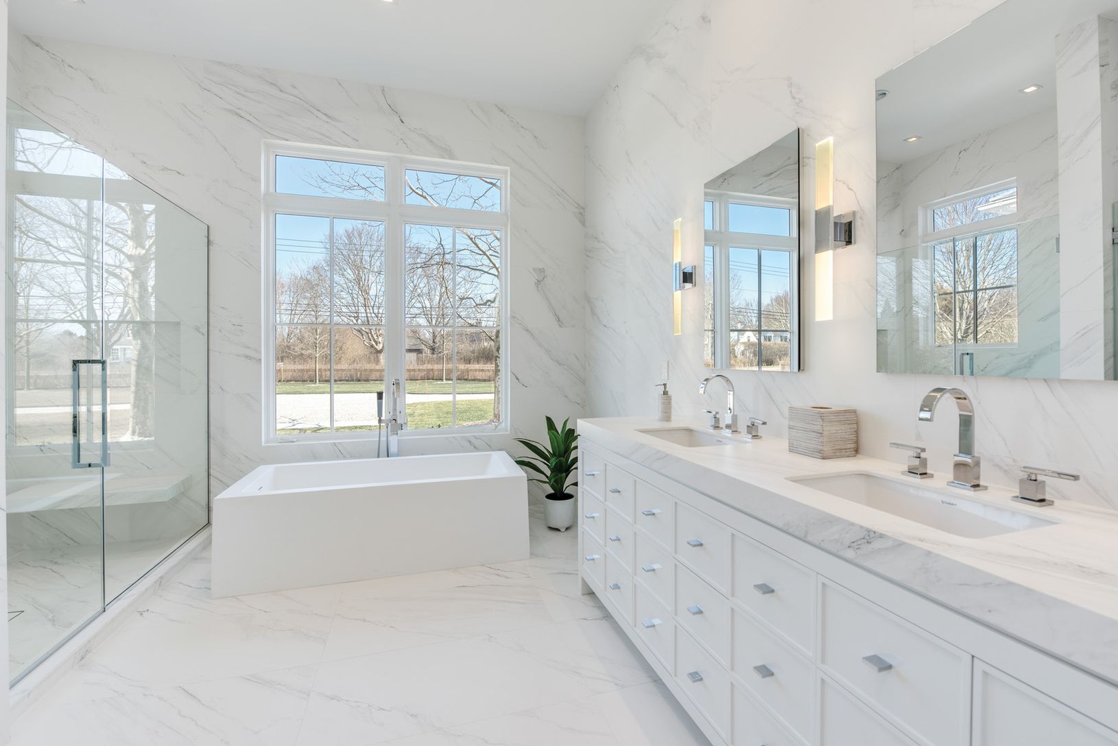 South of the highway in Water Mill discover this newly completed and furnished 8,880+/- sq. ft. (inclusive of lower level) traditional on 1.38+/- acres built by Farrell. Enter the double height foyer to light-filled open living spaces featuring glass railings and including a great room, an eat-in kitchen with island, porcelain countertops and backsplashes, and high end stainless steel appliances and breakfast area, with glass doors opening to