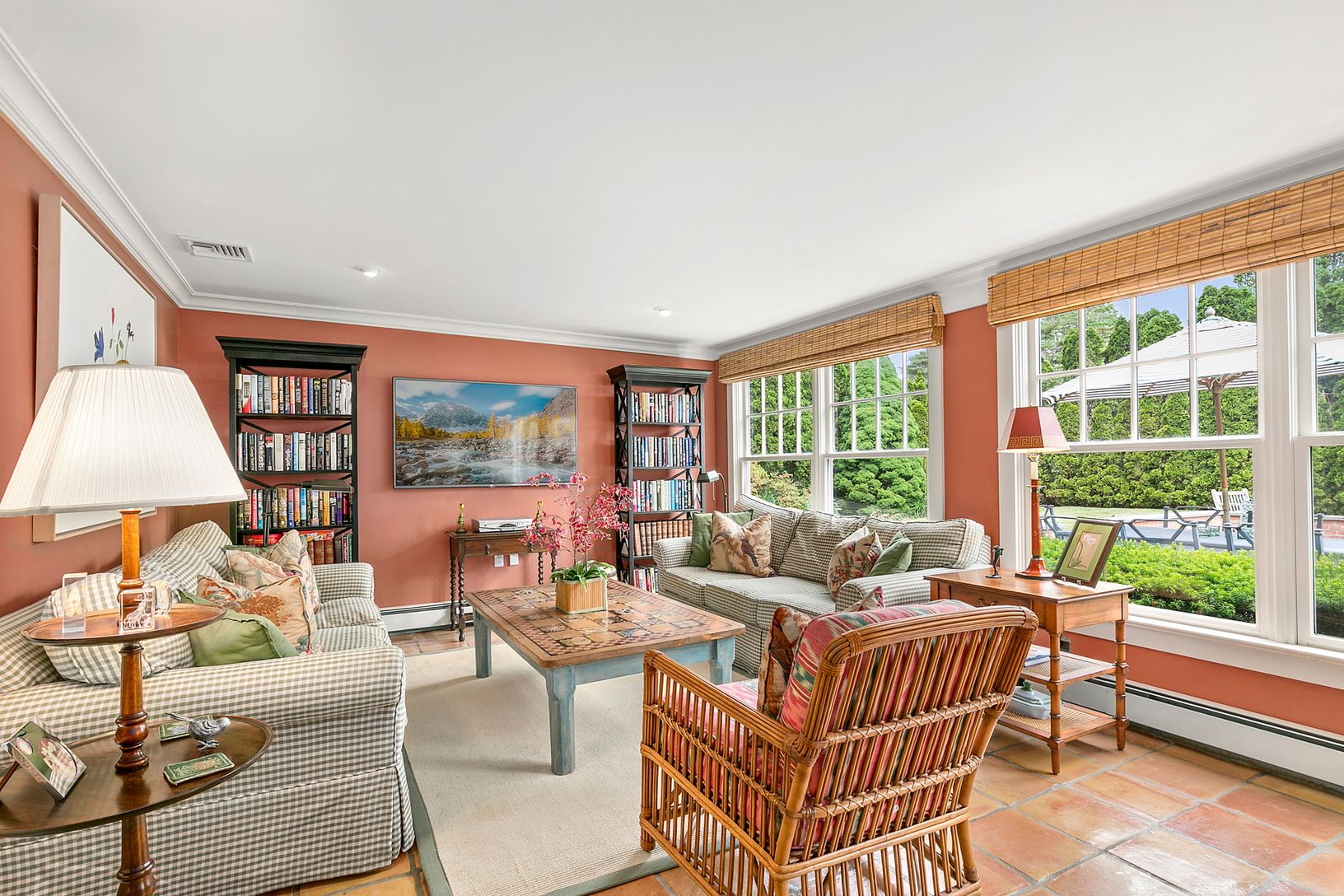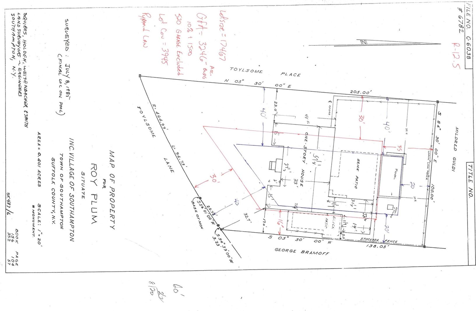 Sought after Toylsome Lane. One of the few streets that are actually walkable to world renown ocean beaches and the finest of Southampton's shops and restaurants including Sant Ambreous and Stevenson's Toy store among many, many others. Easy one floor living with 4 bedrooms, all ensuite (including a master suite with office), 5 baths, large gracious living room with fireplace, Family room, dining area, laundry room and a great kitchen. The lo