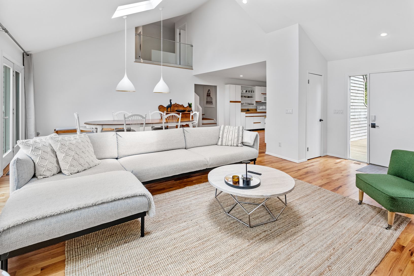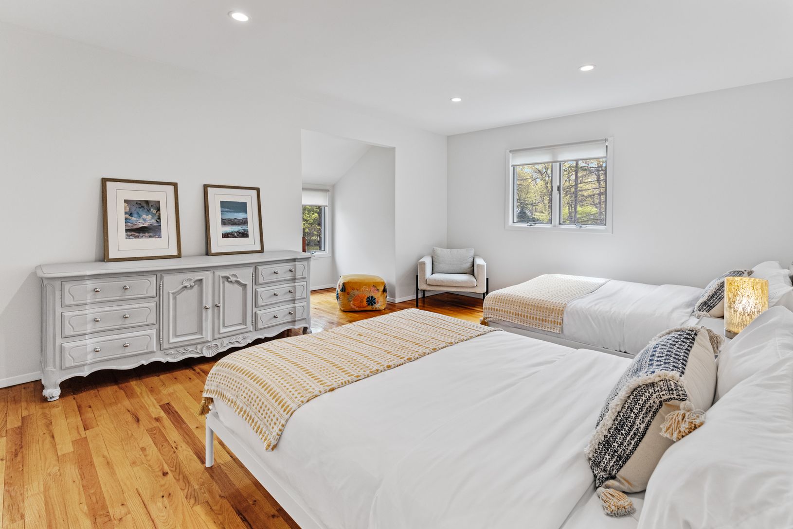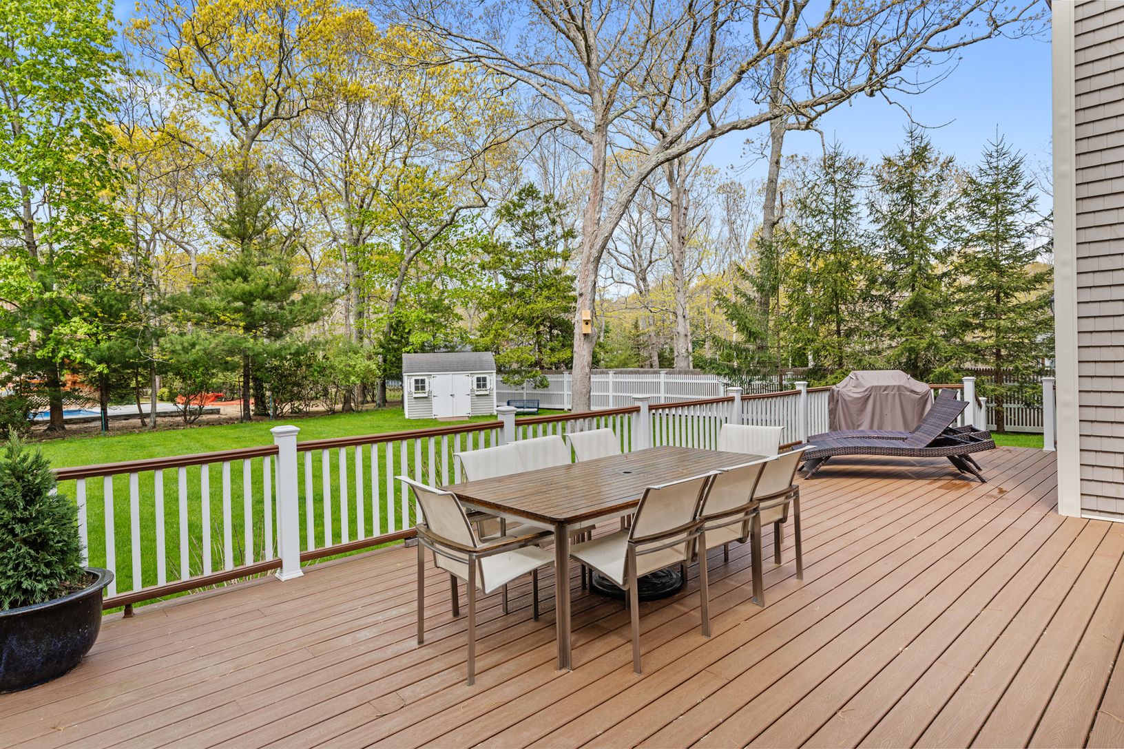 Discover the charm of this newly renovated 3-bedroom, 2.5-bath home nestled on just under half an acre in East Hampton’s Clearwater Beach community. With its bright and immaculate interiors, this residence features beautiful wood floors and an open layout perfect for relaxation and entertaining. The living room, enhanced by skylights and glass doors leading to a spacious deck, seamlessly flows into the dining area, which comfortably seats eigh