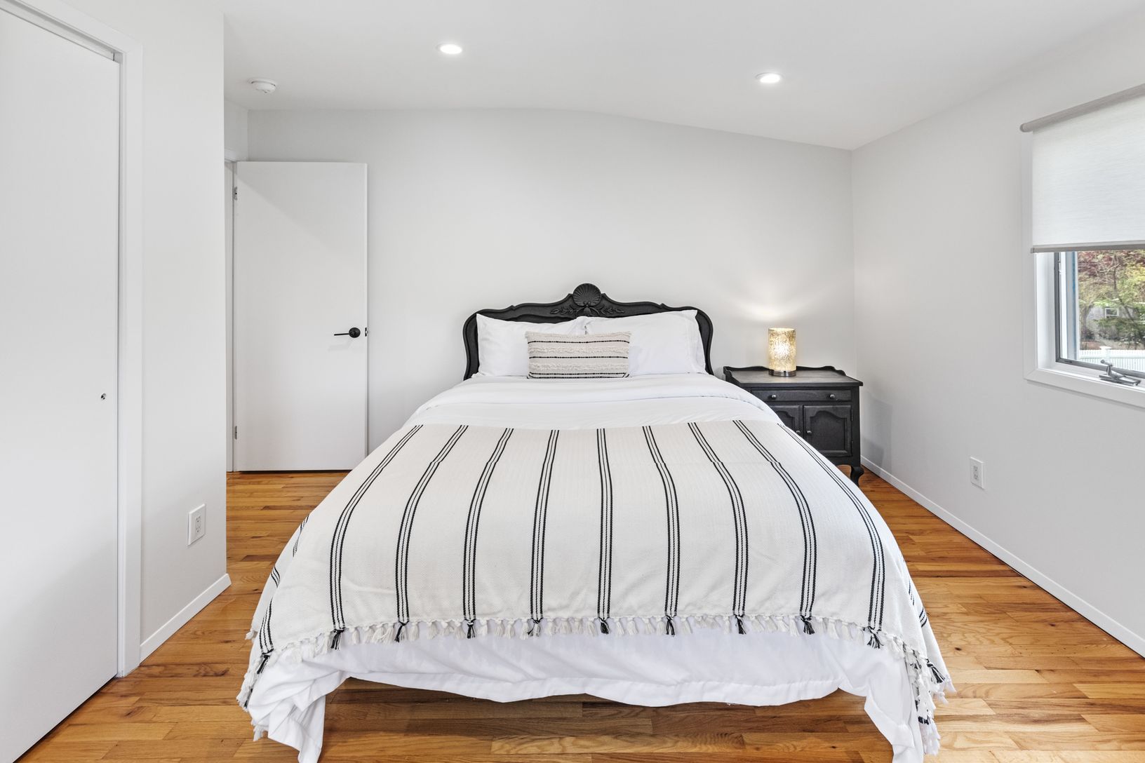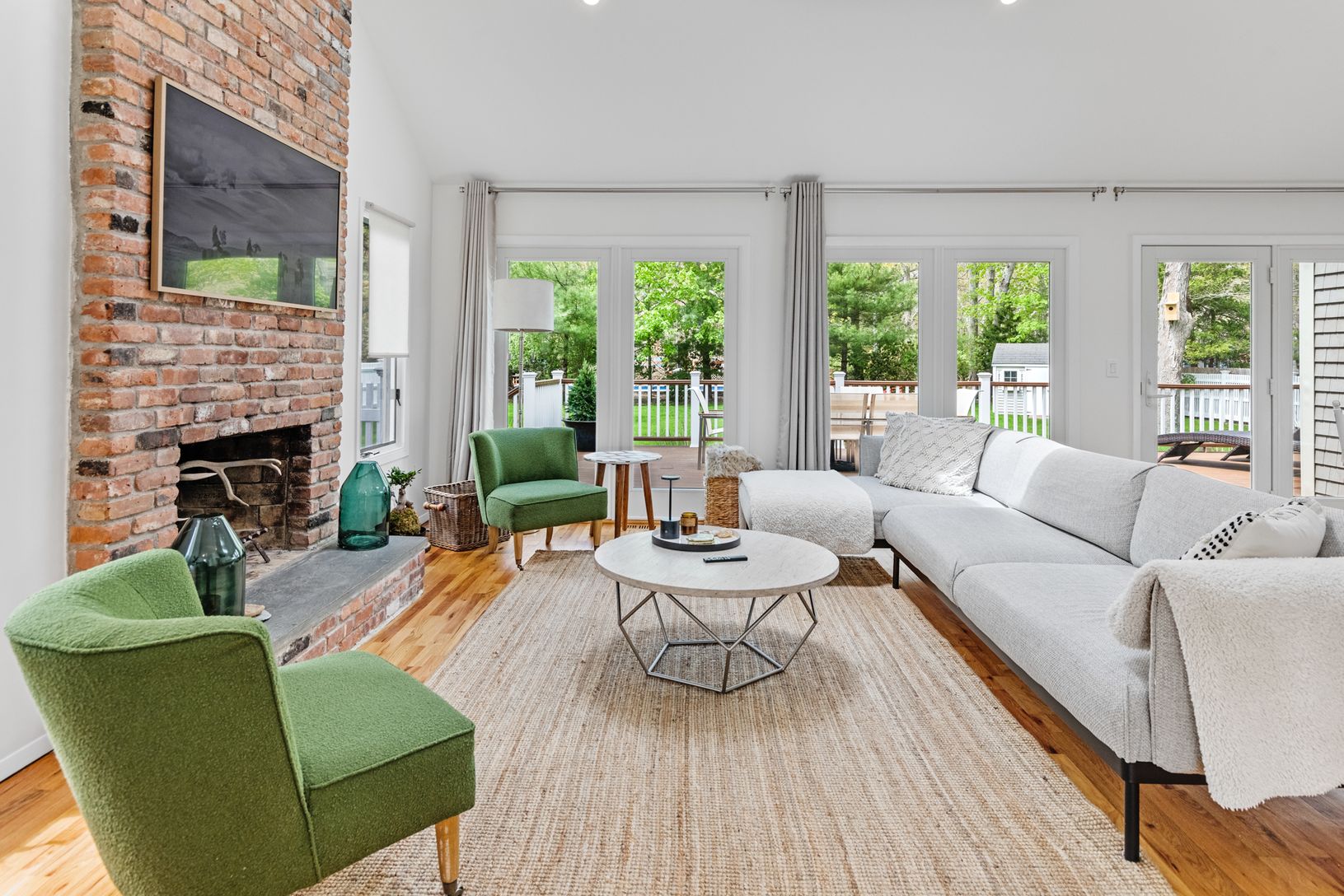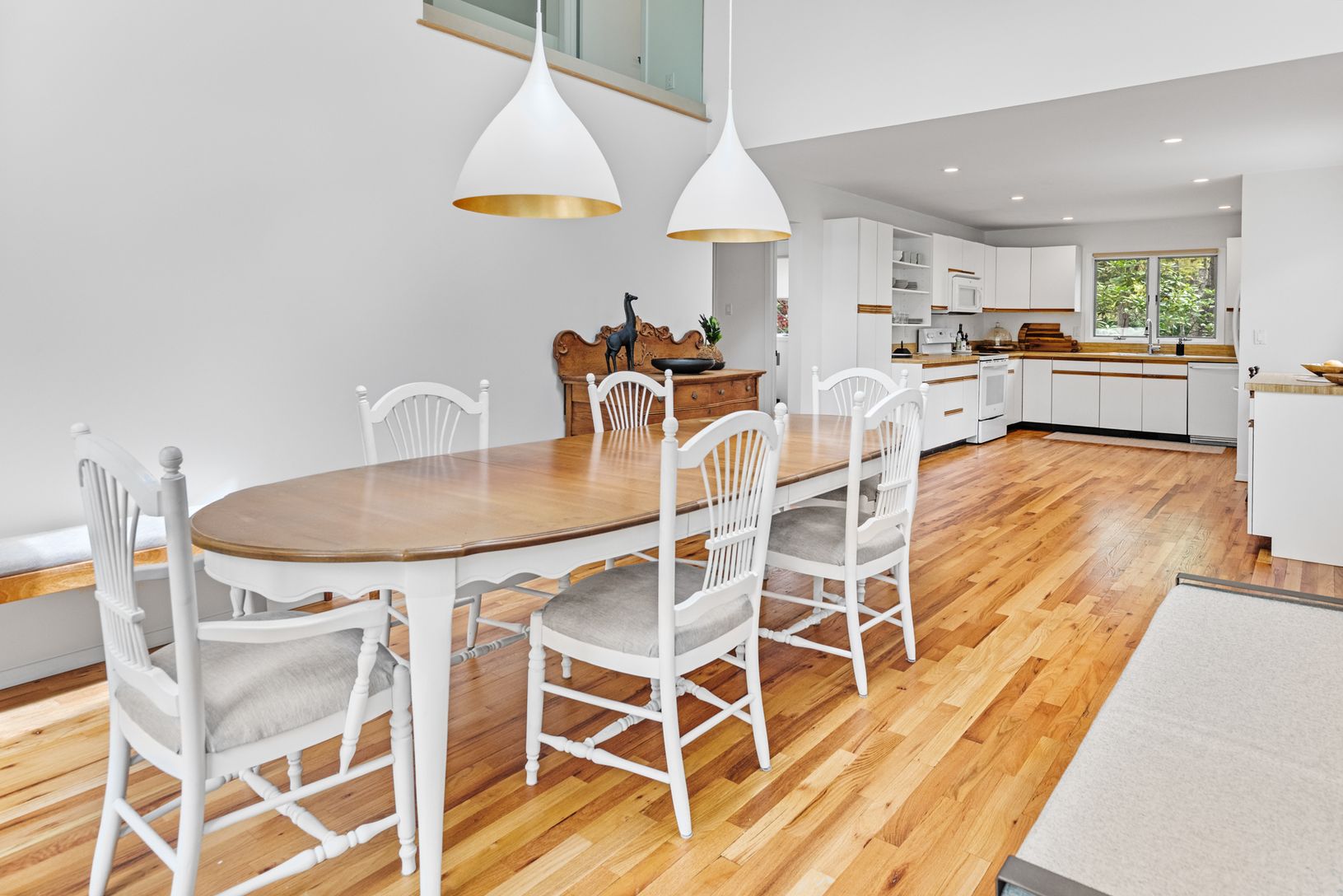 Discover the charm of this newly renovated 3-bedroom, 2.5-bath home nestled on just under half an acre in East Hampton’s Clearwater Beach community. With its bright and immaculate interiors, this residence features beautiful wood floors and an open layout perfect for relaxation and entertaining. The living room, enhanced by skylights and glass doors leading to a spacious deck, seamlessly flows into the dining area, which comfortably seats eigh